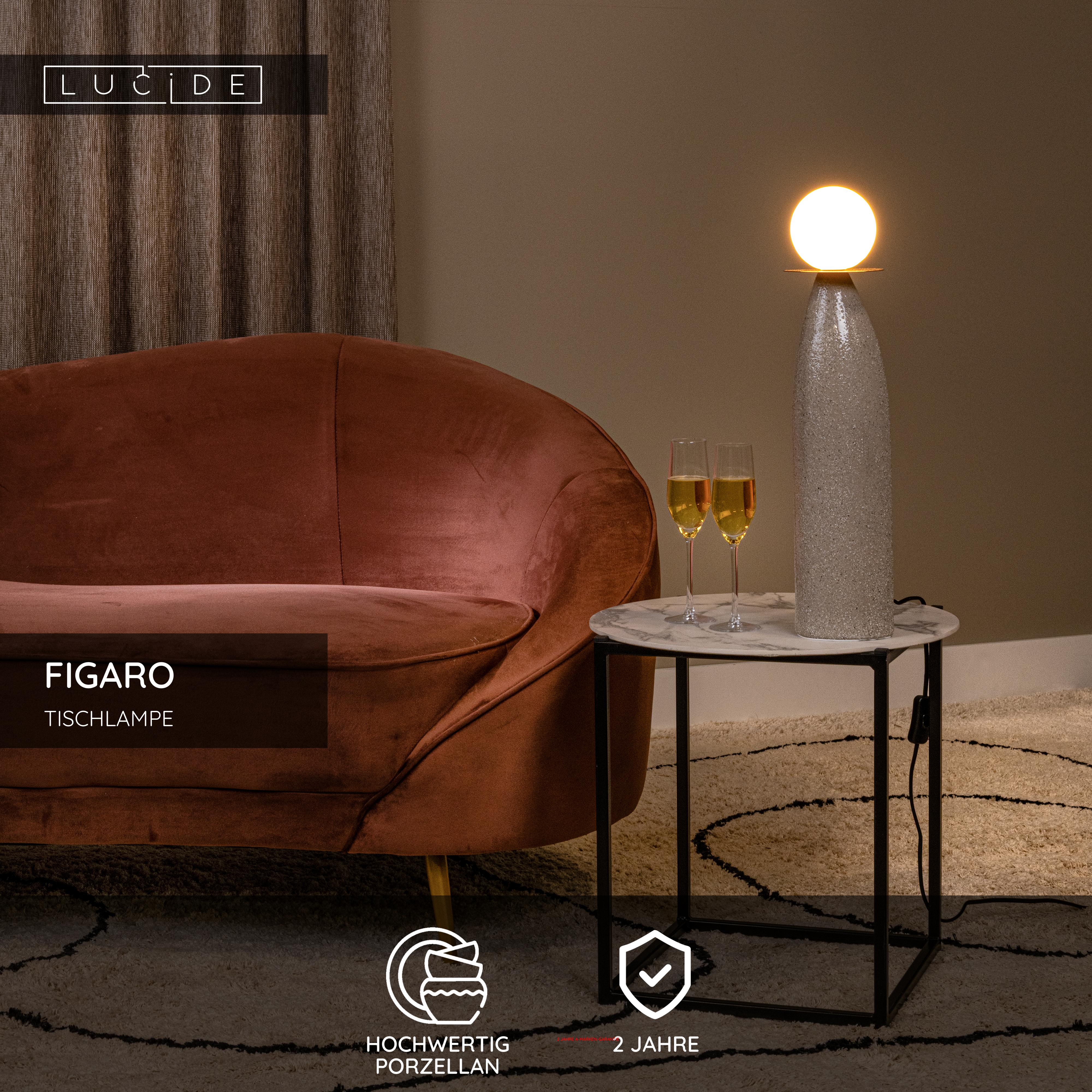 Holen Sie Ihr Porzellan nur zu bestimmten Anlässen hervor? Mit der Tischleuchte Figaro ist ab sofort jeder Anlass gut, um das Porzellan hervorzuholen. Auf dem dünnen, vasenförmigen Sockel dieser Leuchte ruht ein matter, kugelförmiger Diffusor. Dieser verbreitet ein warmes Licht rundum in den Raum. Möchten Sie noch mehr Licht - oder auch nur zusätzliche Atmosphäre - auf den Tisch bringen? Kombinieren Sie gleich mehrere Figaro, eventuell mit unterschiedlichen Größen. Die Tischleuchten ergänzen sich gegenseitig und heben Ihre Einrichtung auf ein höheres Niveau. Mit dem Schalter im Kabel können Sie diese Tischleuchte ganz einfach ein- und ausschalten.