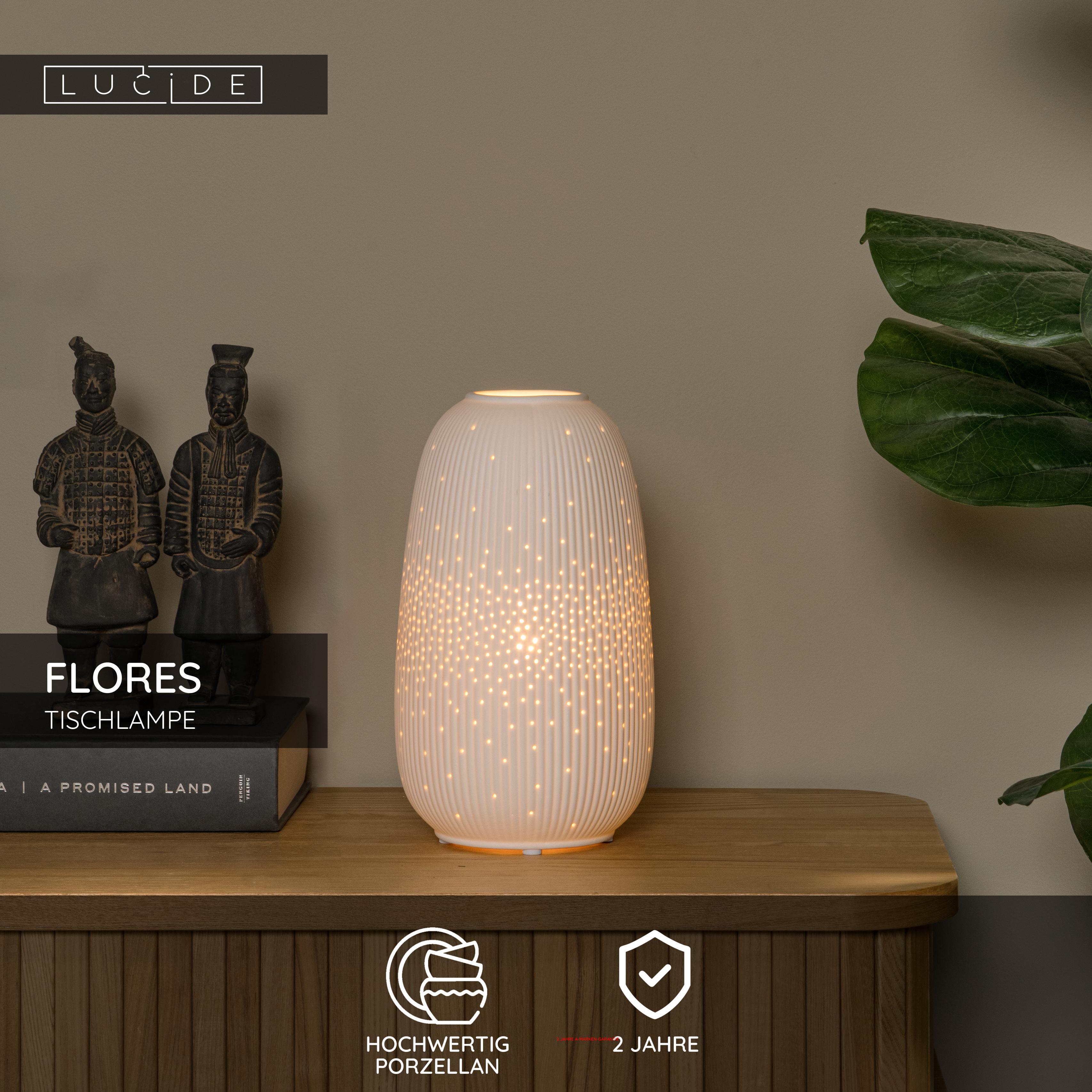 Lucide FLORES - Tischlampe - Ø 14,1 cm - 1xE14 - Weiß