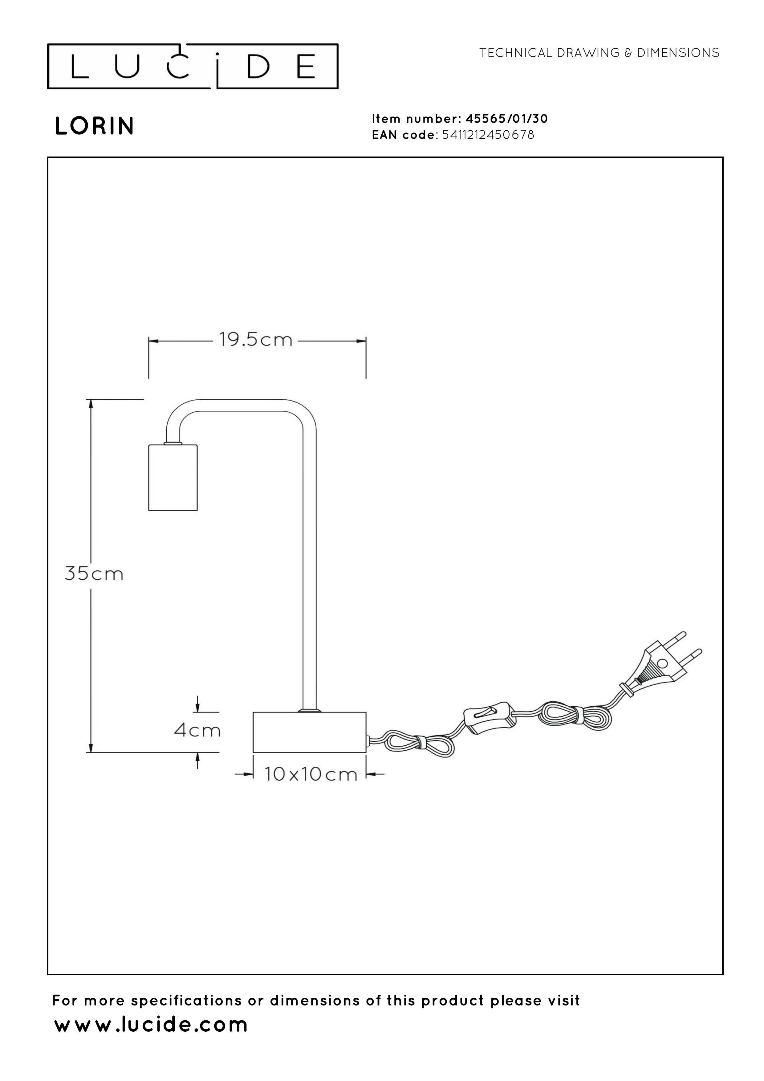 Lucide LORIN - Tischlampe - 1xE27 - Schwarz