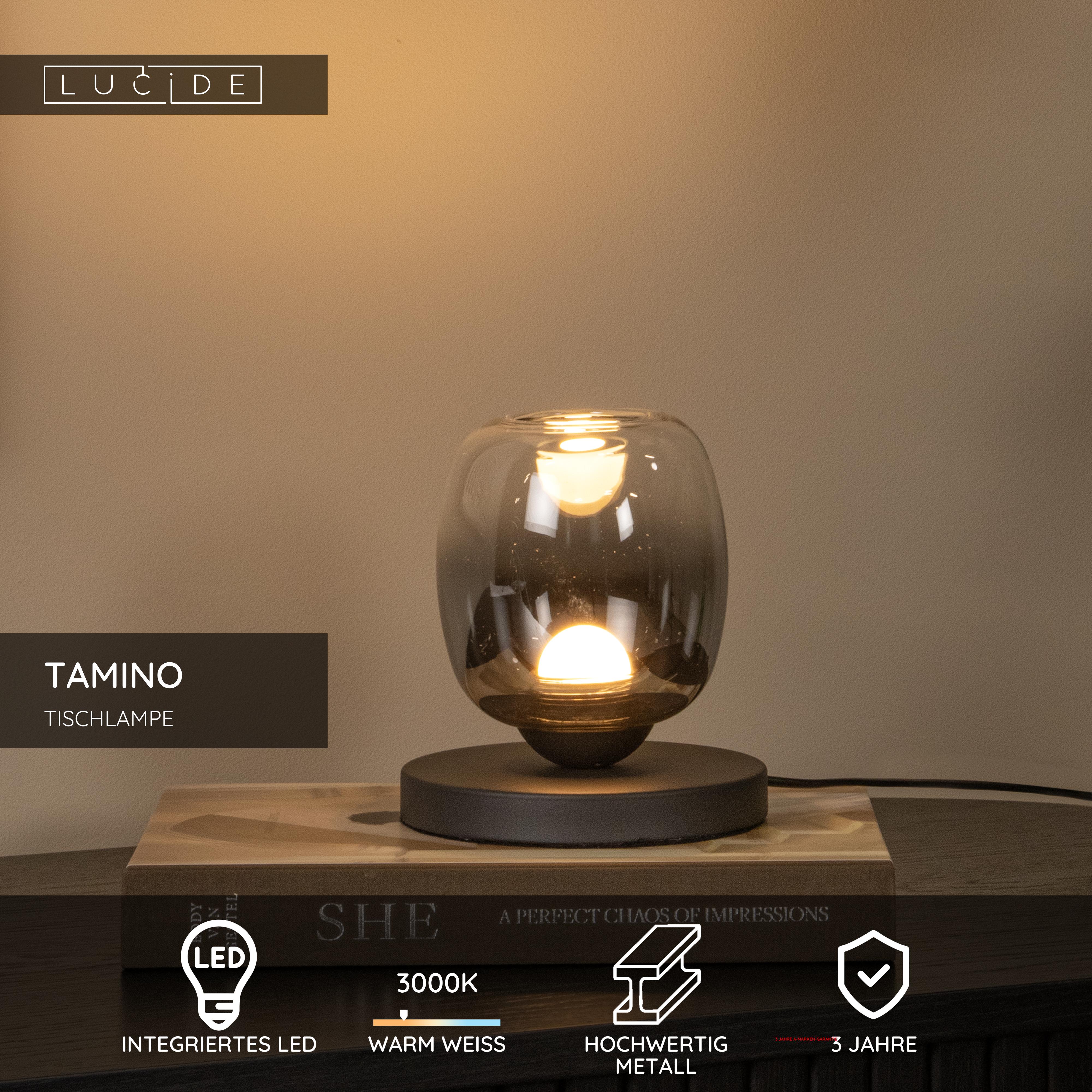 Die Lucide TAMINO Tischlampe ist eine stilvolle Ergänzung für jedes Interieur. Mit einem Durchmesser von 15 cm und einer Höhe von 16,5 cm strahlt diese Lampe moderne Eleganz aus, dank der Kombination aus mattschwarzem Metall und einem rauchfarbenen Glasschirm. Die integrierte LED-Lichtquelle (6W, 3000K) erzeugt ein angenehmes warmweißes Licht und ist energieeffizient. Die Lampe lässt sich bequem über den integrierten Ein-/Ausschalter bedienen. Ob für stimmungsvolle Beleuchtung oder praktische Lichtquellen – diese Tischlampe passt perfekt in jeden Raum. Bestellen Sie jetzt und verleihen Sie Ihrem Interieur ein trendiges Upgrade!