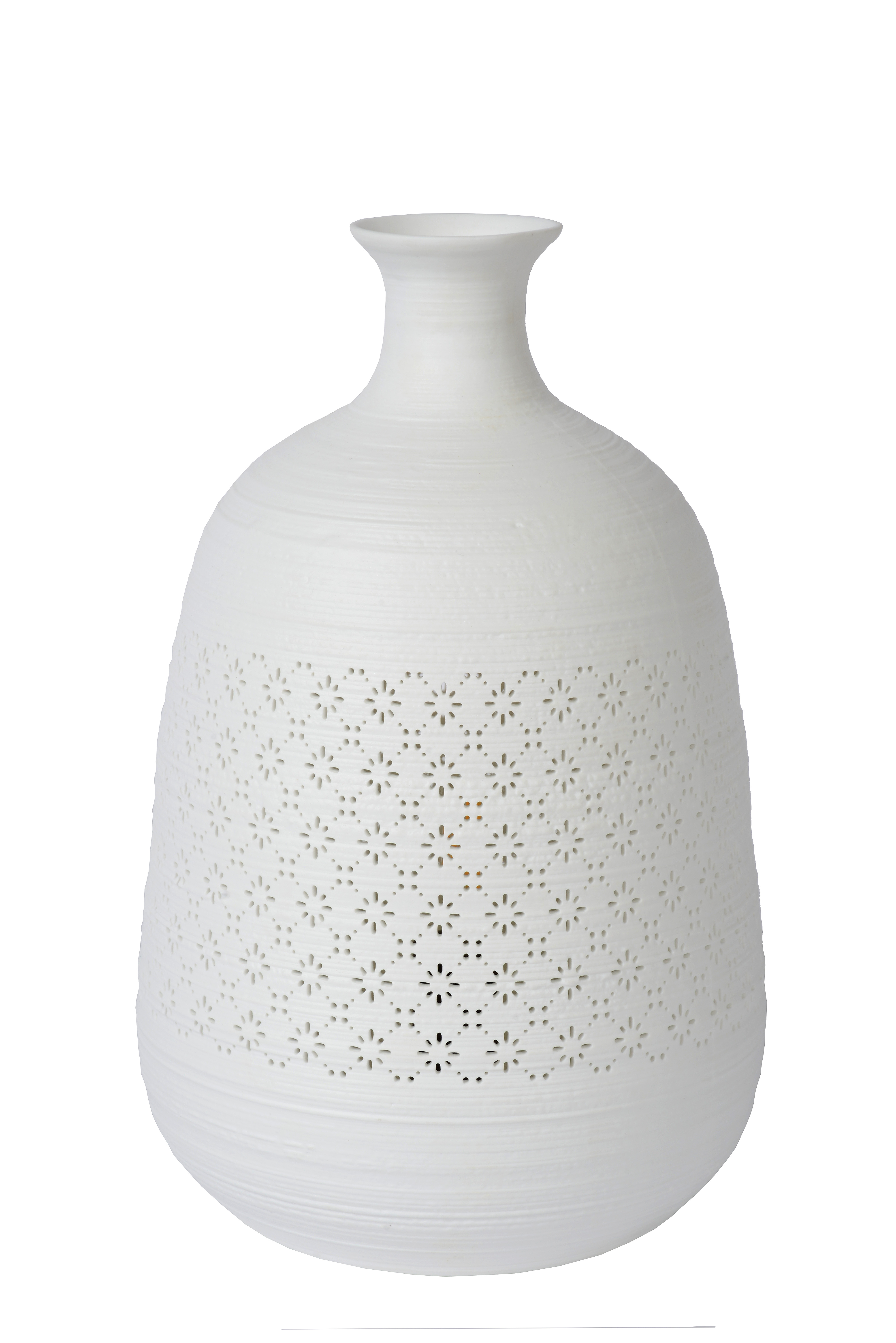 Einen Hauch von Weichheit in Ihrem Interieur können Sie auf verschiedene Weise erreichen, aber kein Material ist so raffiniert wie Porzellan. Wir haben dieser Tischleuchte mit dem Namen Tiesse einen besonders eleganten Touch mit einem federleichten Motiv gegeben, an dem das Licht aus der Armatur austritt. Durch die Flaschenform mit einem Durchmesser von 18,6 Zentimetern wirkt diese Tischleuchte zwar Vintage, ist aber ebenso ein toller Akzent in einem ländlichen oder schlichten modernen Interieur. Sie schalten Tiesse einfach mit dem Schalter am Kabel ein und aus.