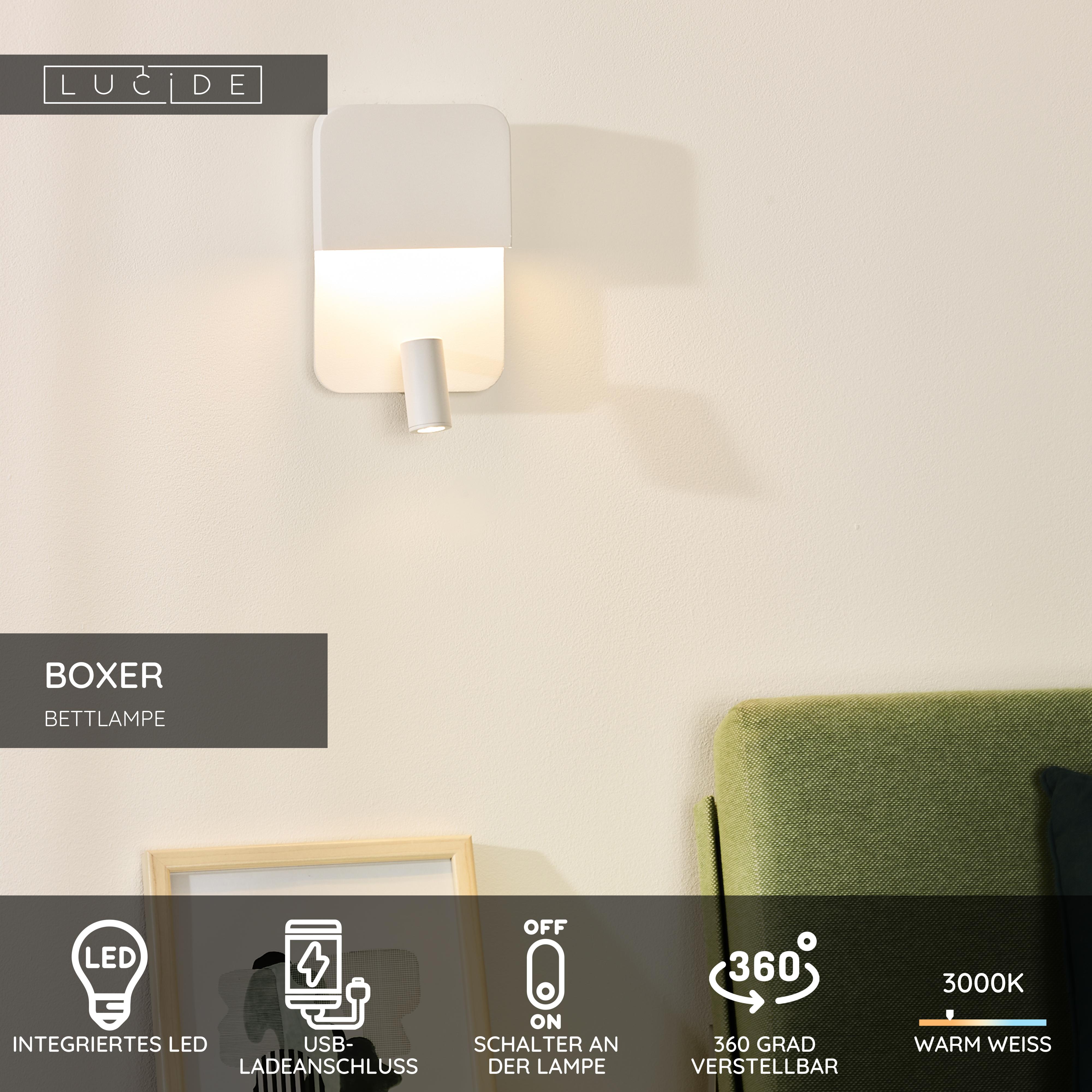 Lucide BOXER - Bettlampe / Wandleuchte - LED - 3000K - Mit USB-Ladepunkt - Weiß