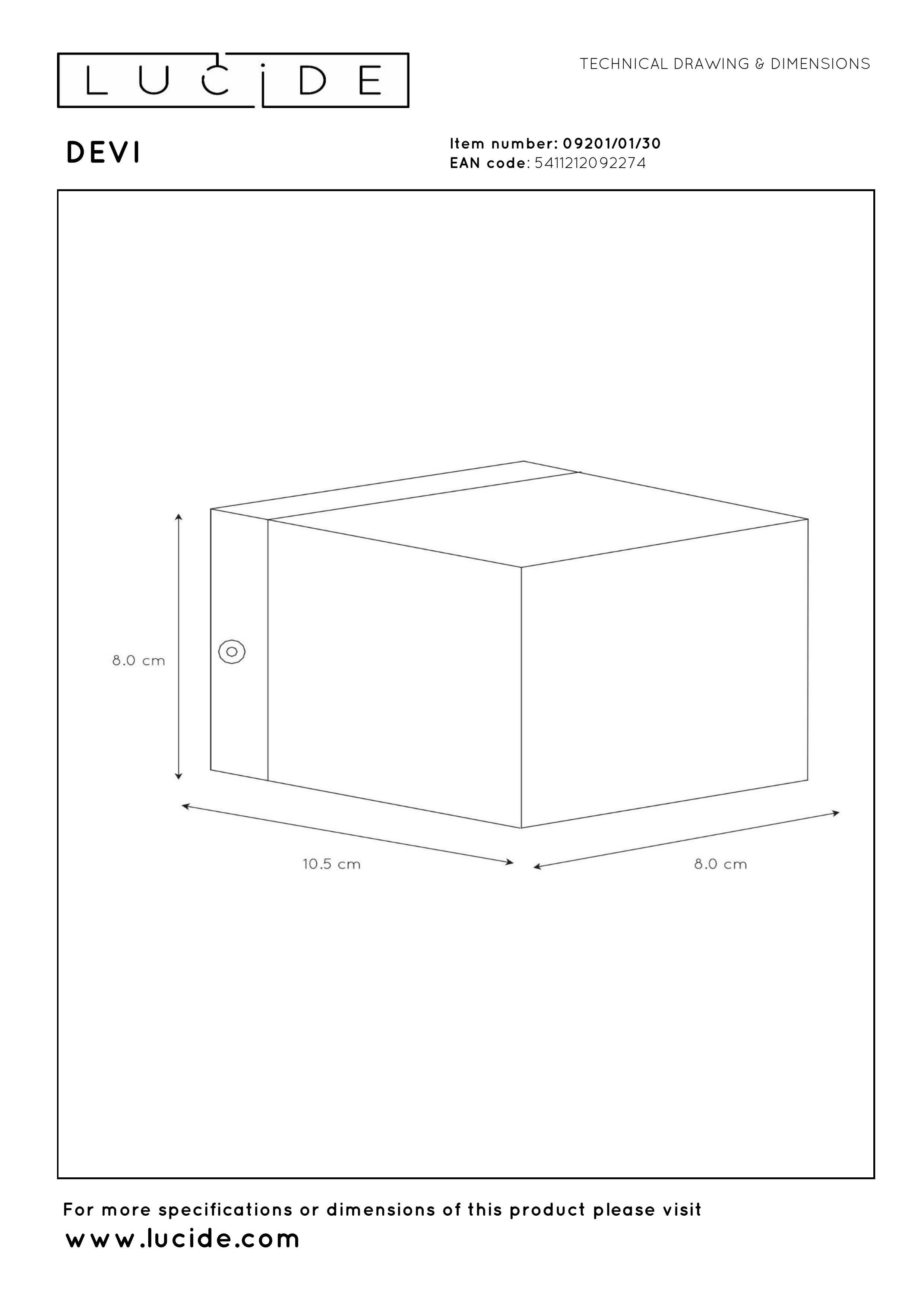 Die Wandlampe Lucide Devi ist eine wunderschön verarbeitete Aluminiumarmatur. Diese von vielen Architekten verwendeten Wandlampe ist am schönsten an einer schönen Putzmauer oder an einer robüst gemauerten Wand. Diese Wandlampe hat nämlich ein hervorragendes sanduhrförmiges Lichtbündel. Mit einer Abmessung der Hinterplatte von 10,5 cm x 8 cm ist die Devi einfach über den Unterputz-Abzweigdose zu platzieren. Die Devi ist mit einer G9 Hochvoltfassung versehen, wird jedoch ohne Lichtquelle geliefert. Sie haben die Wahl aus einem traditionellen G9 Halogenspot (max 42W) oder einer energieeffizienten (nicht) abblendbaren G9 LED-Lichtquelle. LED oder traditionell Halogen, da diese Devi keinen Transformator hat, ist die Armatur besonders einfach abzubleden (mit einem basic Ein- oder Aufbaudimmer - nicht eingeschlossen). Die Devi ist in weißer-, schwarz mit innen in mattem Gold und Aluminiumfarbe erhältlich.