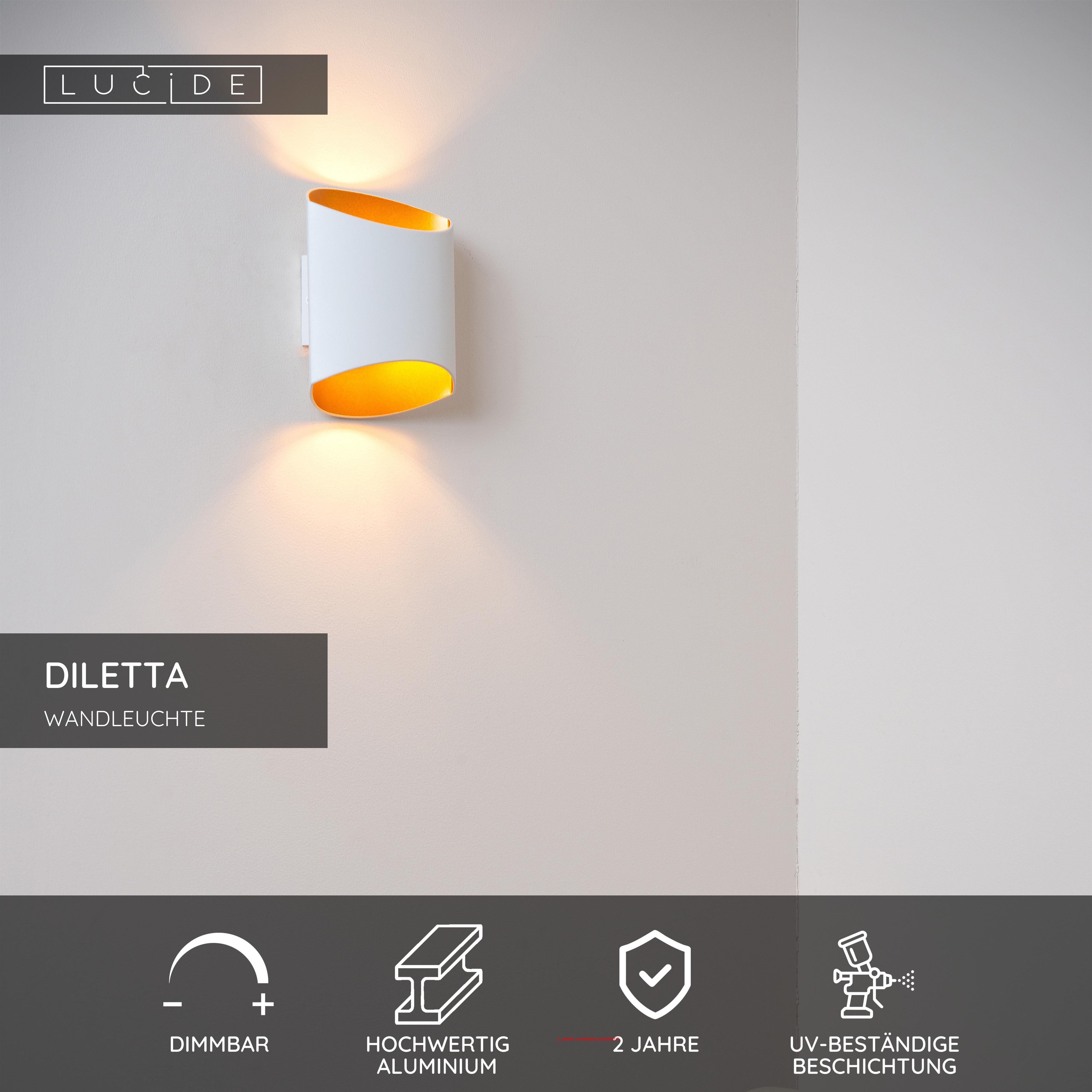 Mangelt es Ihrer Einrichtung noch an Klasse und Stil? Mit Diletta ist das Problem im Handumdrehen gelöst. Diese elegante Wandbeleuchtung begeistert durch ihr fließendes, halbkreisförmiges Design. So bietet Diletta gleichzeitig Uplight und Downlight, wobei die Lichtquelle zwischen hochwertigem Aluminium verpackt ist. Ihre kompakten Abmessungen von 16 x 8 x 18 Zentimetern und ihr geringes Gewicht tragen zum zeitlosen Charakter von Diletta bei. Schließen Sie diese Lampe an einen Dimmer an, um in jedem Raum Ihres Zuhauses noch mehr Atmosphäre zu schaffen.