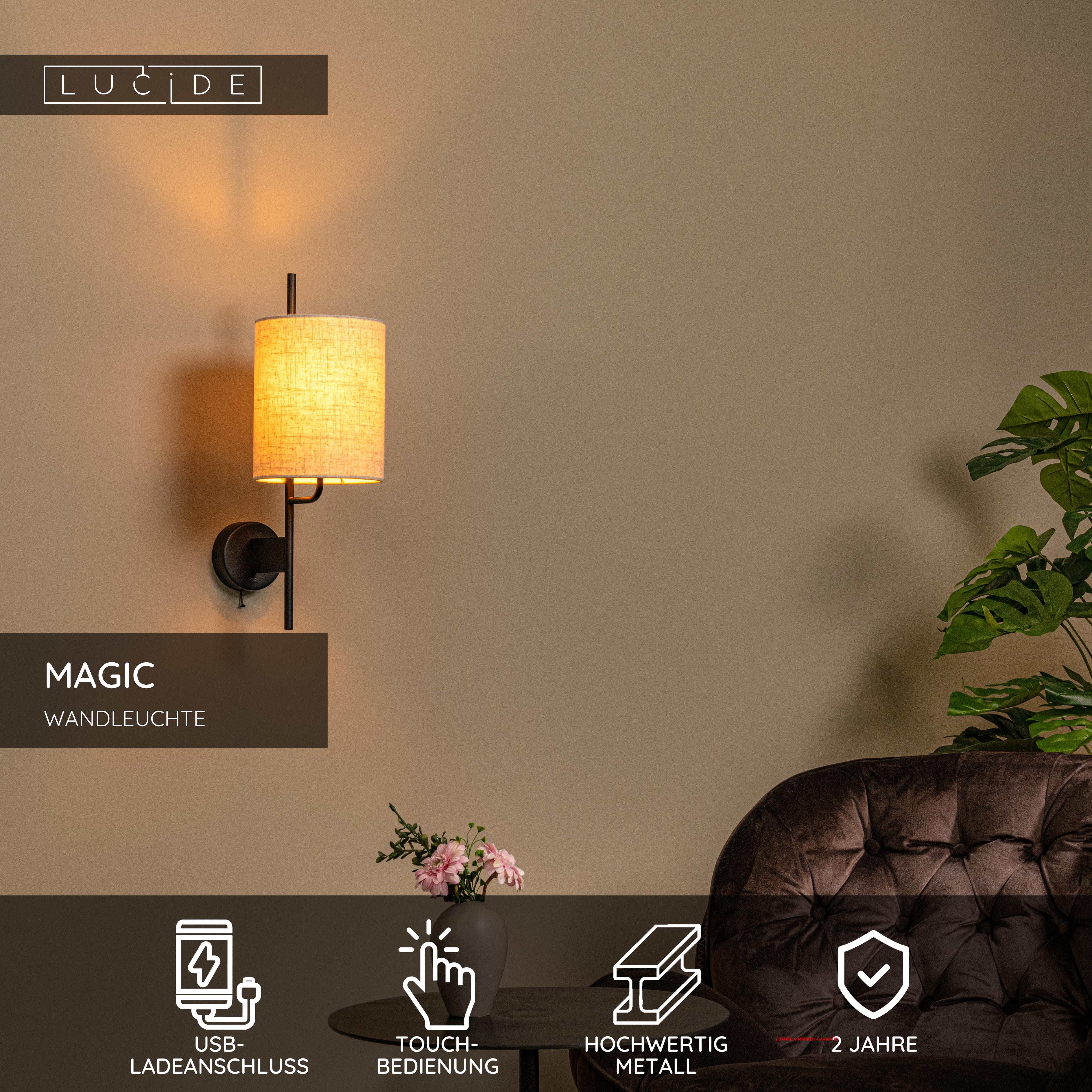 Lucide MAGIC - Wandleuchte - 1xE27 - Mit USB-Ladepunkt - Schwarz