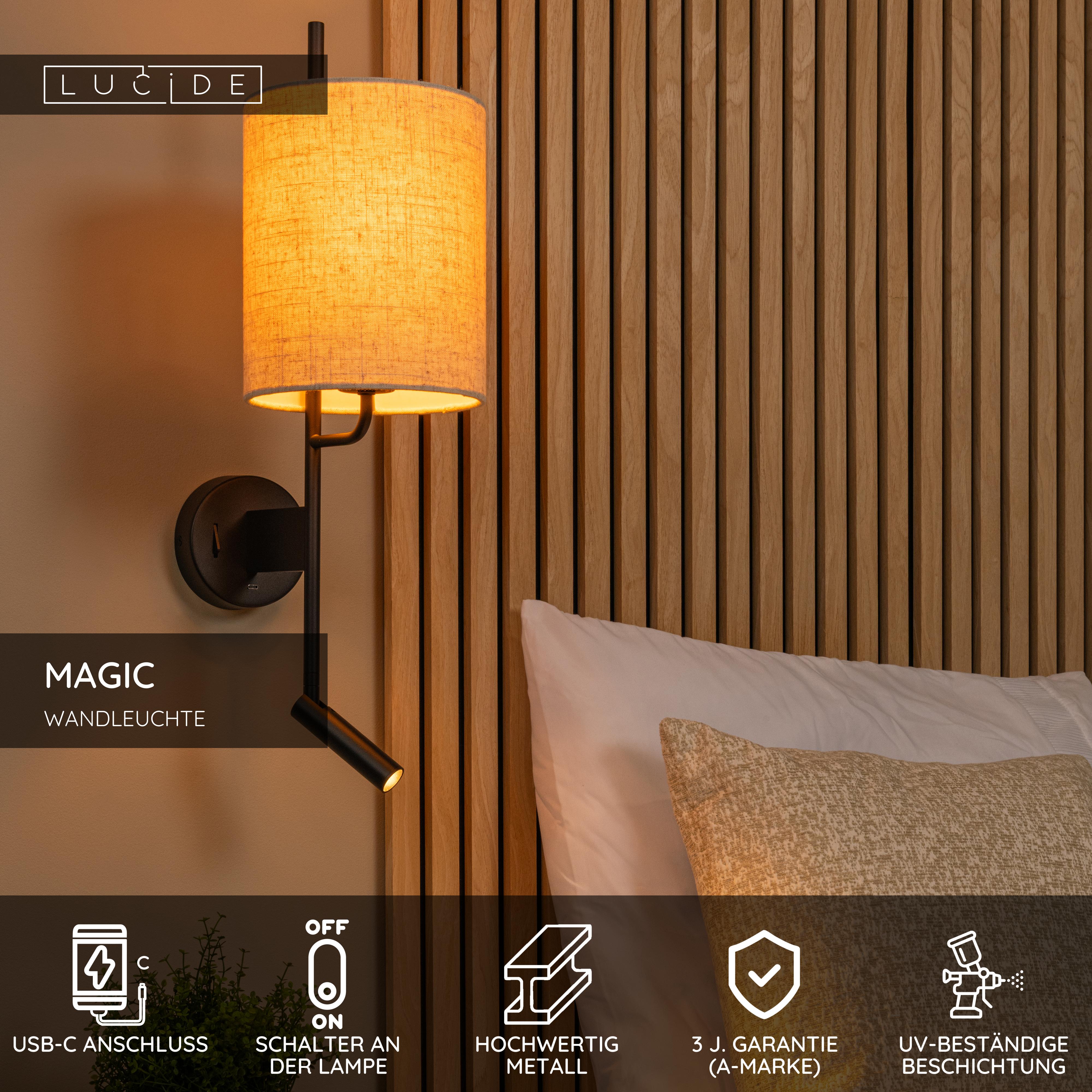 Lucide MAGIC - Wandleuchte - 1xE27 - Mit USB-Ladepunkt - Schwarz