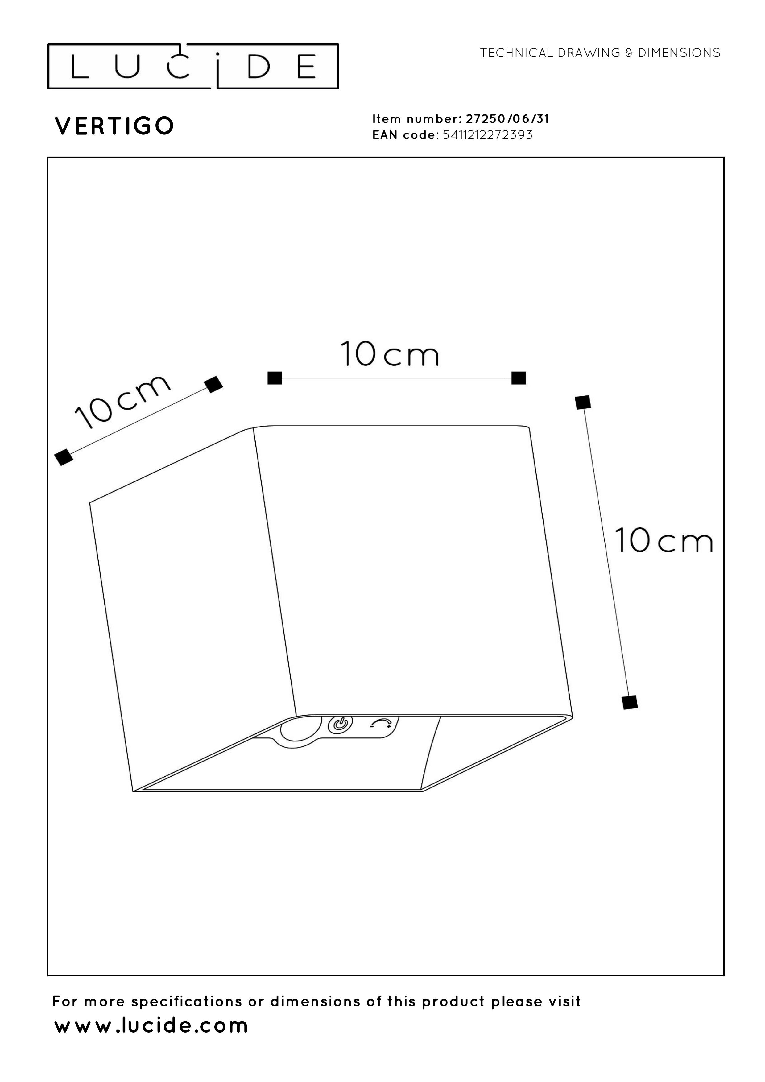 Mit dieser vielseitig einsetzbaren Wandleuchte können Sie Ihrem Innen- oder Außenbereich einfach einen besonderen Akzent verleihen. Ein Blickfang in Ihrem Flur oder ein gemütlicher Schein auf Ihrer Terrasse? Mit Vertigo gelingt das im Handumdrehen. Der batteriebetriebene Wandstrahler kann zum Aufladen einfach an der magnetischen Montageplatte ab- und angeklickt werden. Darüber hinaus ist Vertigo mit einem Bewegungssensor und integrierter dimmbaren LED-Lichtquelle ausgestattet. Um die Wandleuchte ein- und auszuschalten oder sie zu dimmen, betätigen Sie einfach den Schalter an der Leuchte. Mit Vertigo haben Sie nur Vorteile.