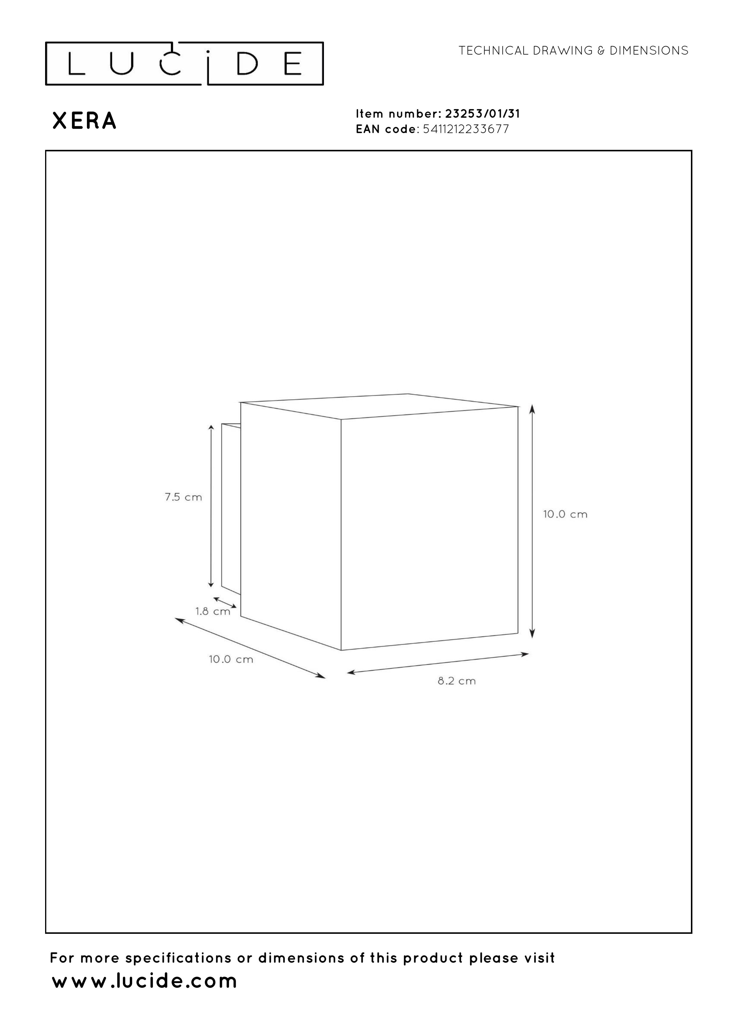 Wandlampe Xera ist mit ihren symmetrischen Abmessungen von 10 x 10 cm der richtige Stimmungmacher im modernen Interieur. Die geradlinigen Linien und die helle, weiße Farbe erzeugen einen frischen Ton im Wohnzimmer, Flur, Schlafzimmer und in der Küche. Das G9 socket kann sowohl für eine Halogenlampe als für eine LED-Lampe verwendet werden. Die Lichtquelle kann verwendet werden zur Beleuchtung eines dunklen Flurs oder als Stimmungmacher am Abend, gerade wie Sie wollen. Natürlich können Sie auch beide Optionen wählen, da diese Armatur den meisten Standarddimmern angeschlossen werden kann. Diese reine Stimmungsbeleuchtung ist perfekt zur modernen Beleuchtung von Wänden oder Objekten.