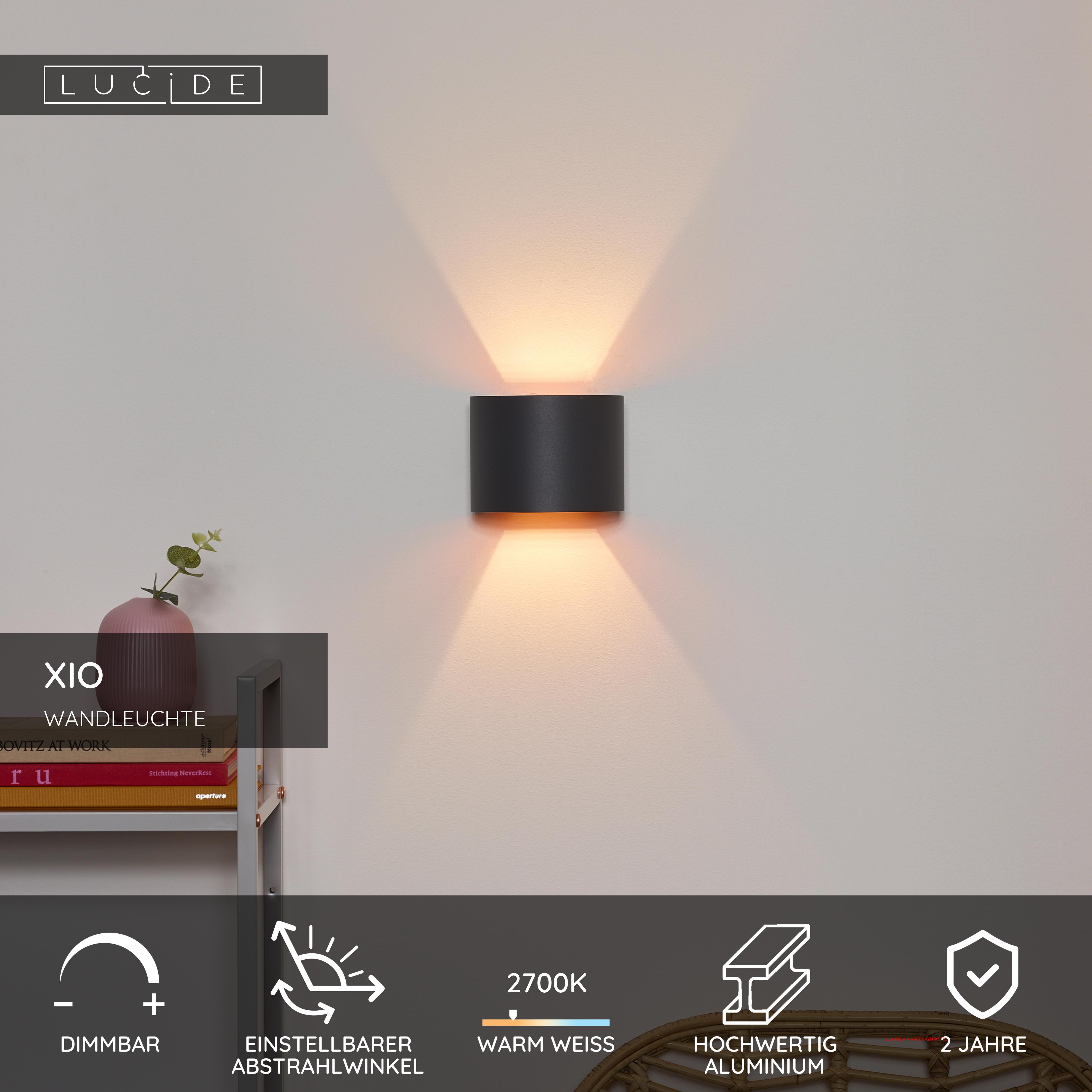 Eine runde, gebogene LED-Lampe von Xio. Diese graue Kugel von Lucide wird dank des Aluminiumgestells zum Leichtgewicht. Xio ist eine kleine, moderne Wandlampe, die gut zur Geltung kommt und mit LED-Lampen kompatibel ist. Eine moderne Lichtquelle für maximal 4W und eine Lichtfarbe von 2700 K. Diese robuste Wandlampe mit einer G9-Fassung beleuchtet Ihr Bett oder Ihren Esstisch. Haben Sie Lust auf ein romantisches tête-à-tête bei Kerzenlicht oder eher auf ein Familie-Essen mit einem Lichtspiel? Sie bestimmen die Stimmung, da die Xio auch einem Dimmer angeschlossen werden kann.
