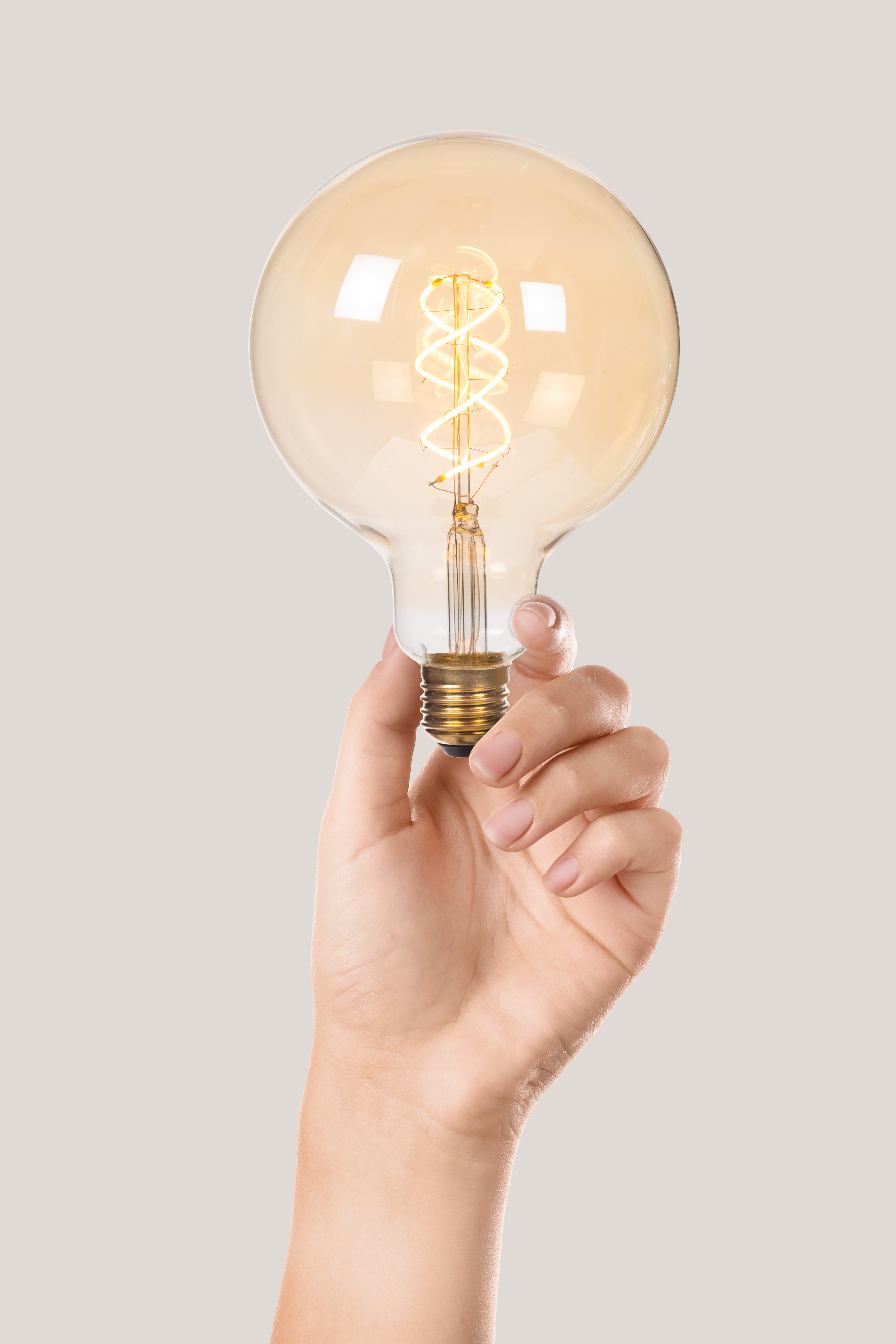 Der Look einer alten Glühbirne mit einem modernen Touch. GIANT LED Bulb erkennen Sie leicht durch den gelbe Faden und das bernsteinfarbene Glas. Dies verleiht der Lampe einen einzigartigen Retro-Look und bietet ein atemberaubendes Lichtspektakel. Aber LED Bulb ist nicht nur beliebt wegen seinem Retro-Design. Auch das warmweiße Licht ist ein echter Blickfang. Diese LED-Lampe passt perfekt in eine Hängeleuchte, bei der das Leuchtmittel gut sichtbar ist. Mit seiner Dimmfähigkeit erzeugt LED Bulb eine tolle Stimmung in Ihrem Haus.