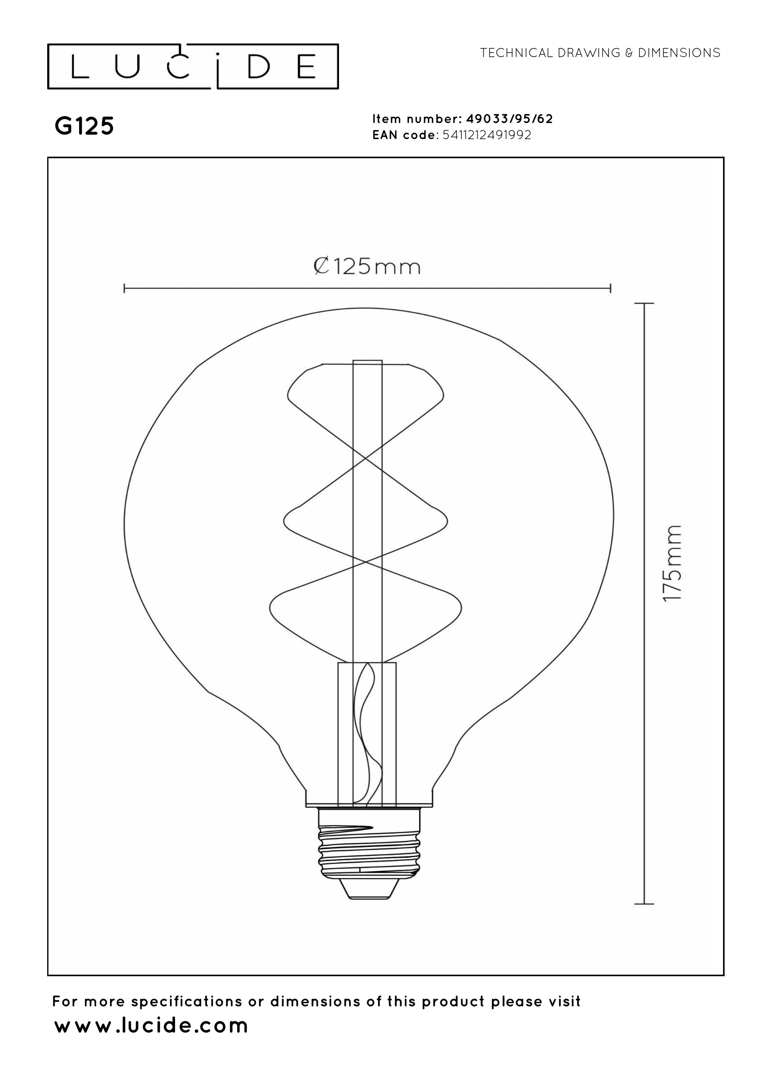 Lucide G125 - Glühfadenlampe - Ø 12,5 cm - LED 3 StepDim (Memory) - E27 - 1x4,9W 2200K - Amber