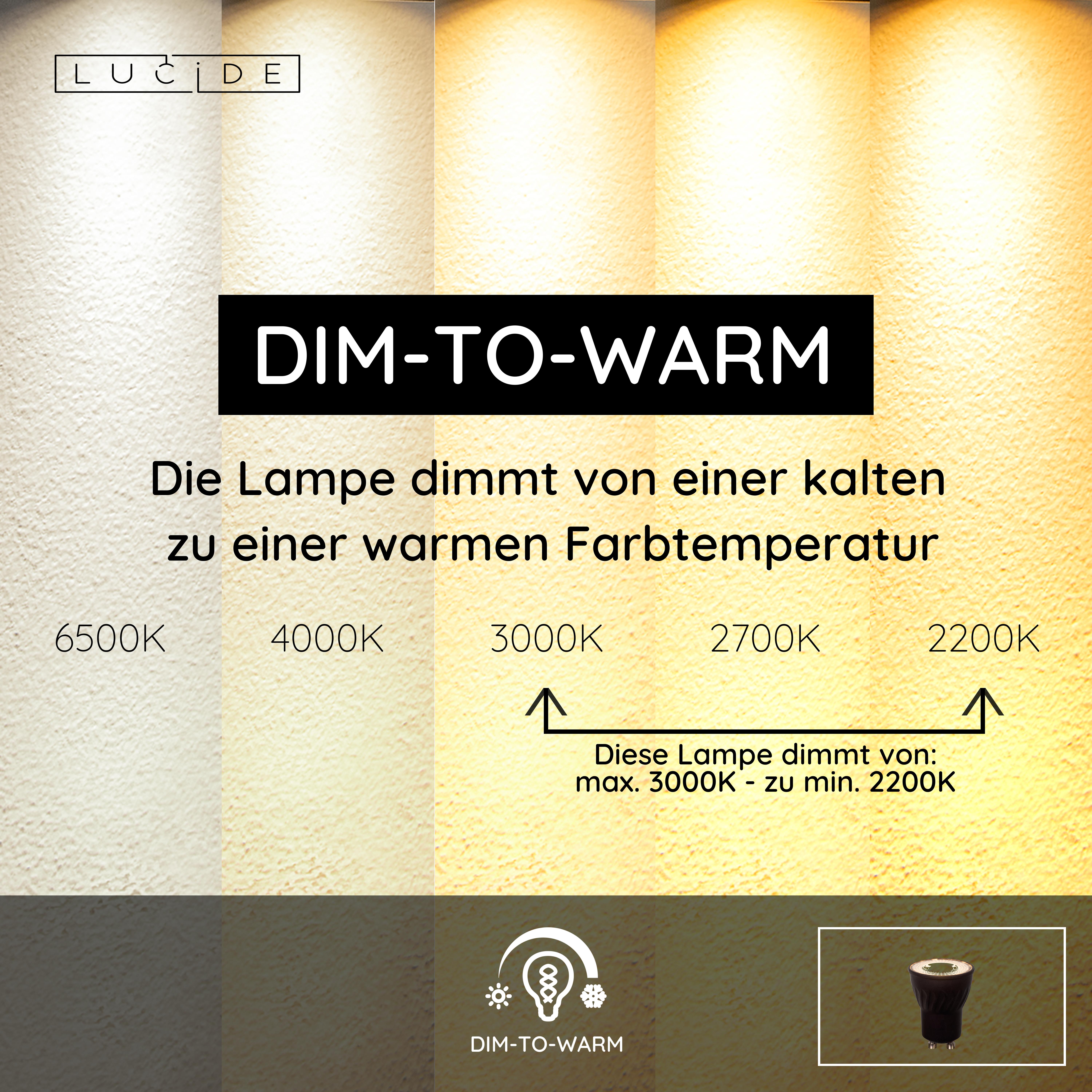 - Dim to warm, dimmbar zu wärmeres Lichtfarbe (2200K)