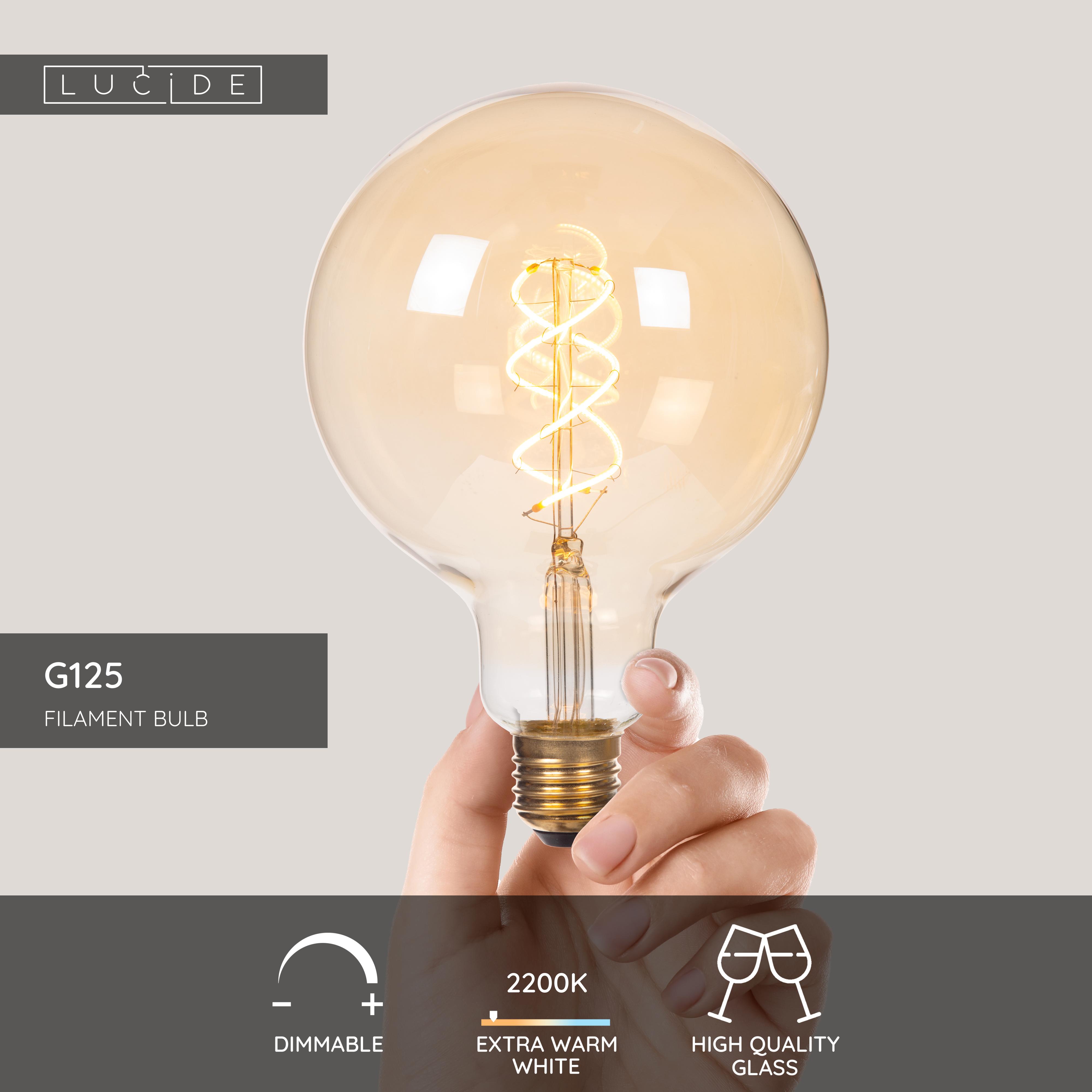 Lucide G125 - Filament bulb - Ø 12,5 cm - E27 - 1x4,9W 2200K - Amber