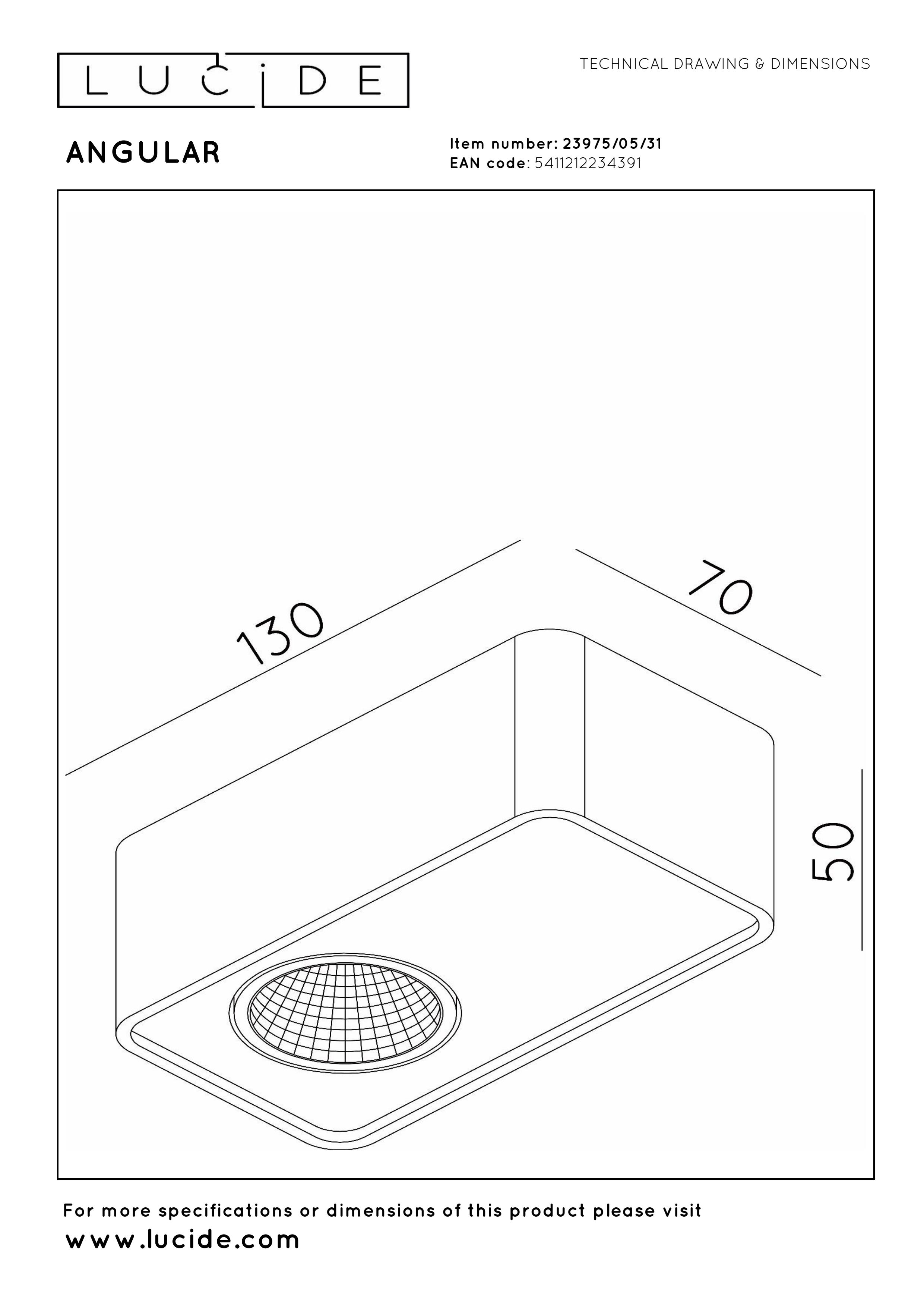 Lucide ANGULAR - Ceiling spotlight - LED Dim. - 1x6W 2700K - White | Premium
