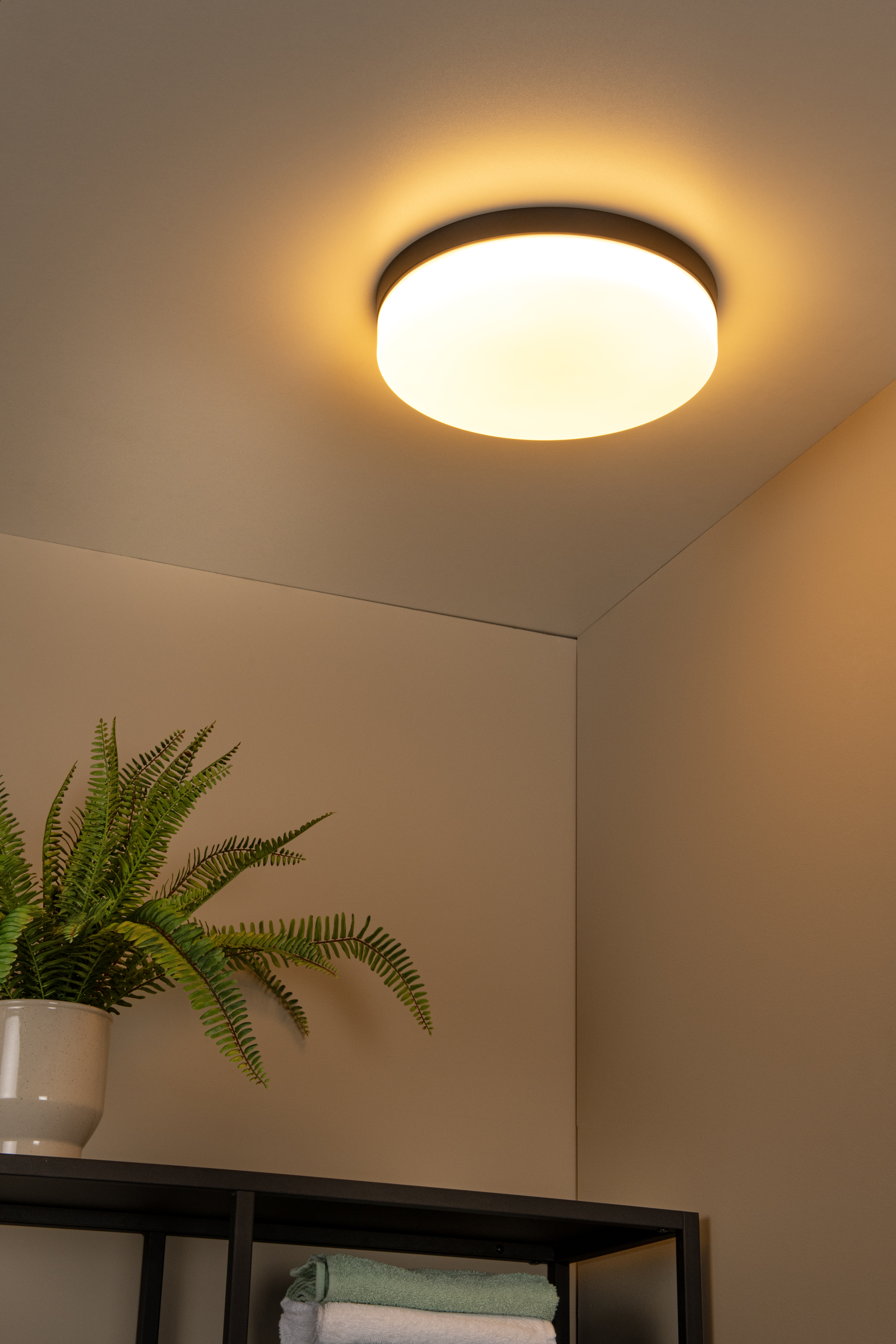 Step into the bathroom and let Biskit surprise you. This ceiling light with a diameter of 34.5 centimetres has a built-in LED bulb that emits a warm white light. It will transform your bathroom into an oasis of peace and tranquillity. But Biskit is more than just a beautiful light. With its built-in motion sensor, it greets you with light as soon as you enter the bathroom. And it switches off automatically when you leave. This makes Biskit extremely energy efficient. Made from high-quality acrylic and designed with functionality and style in mind, Biskit is the ideal light for any modern bathroom.