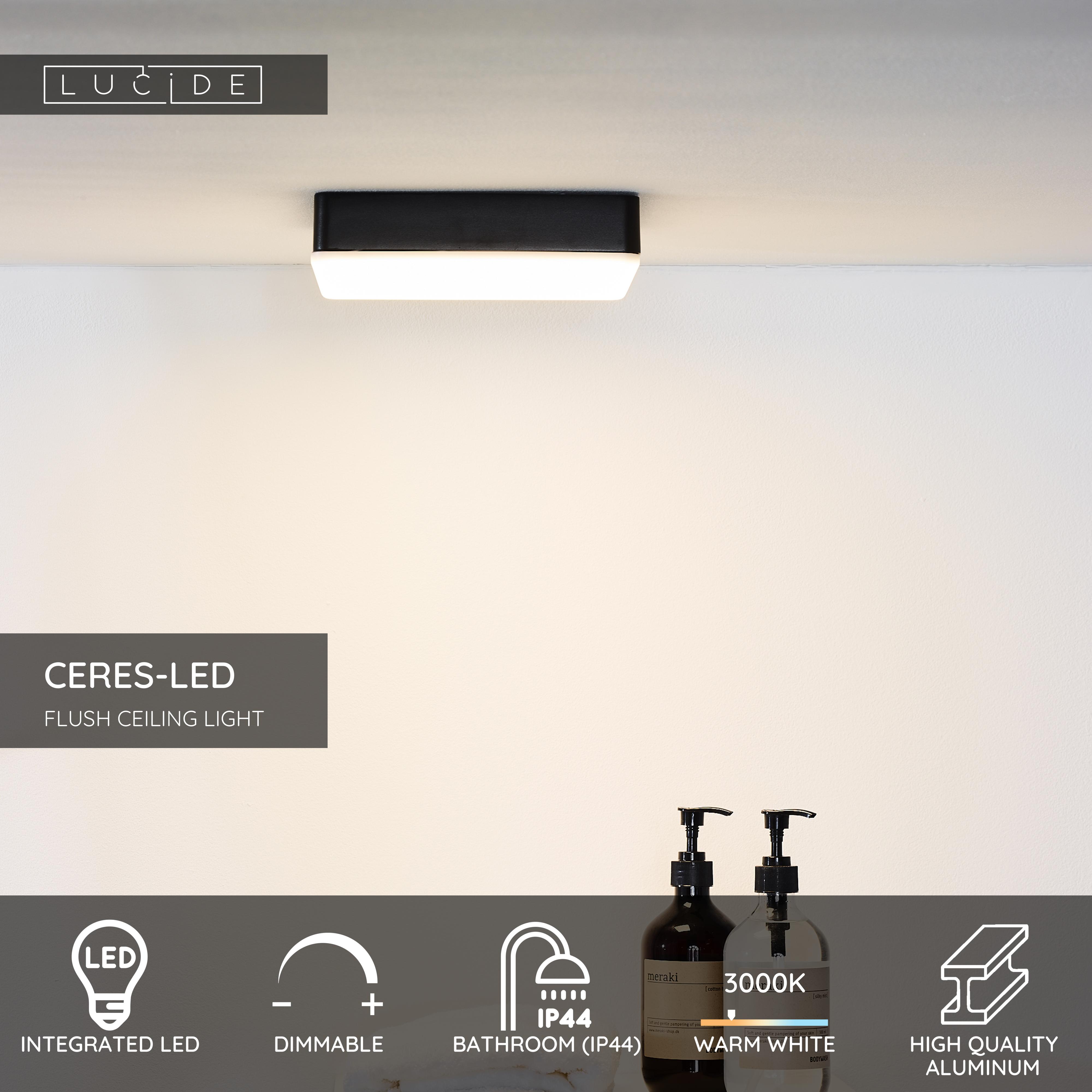 Lucide CERES-LED - Flush ceiling light Bathroom - LED Dim. - 1x30W 3000K - IP44 - Black