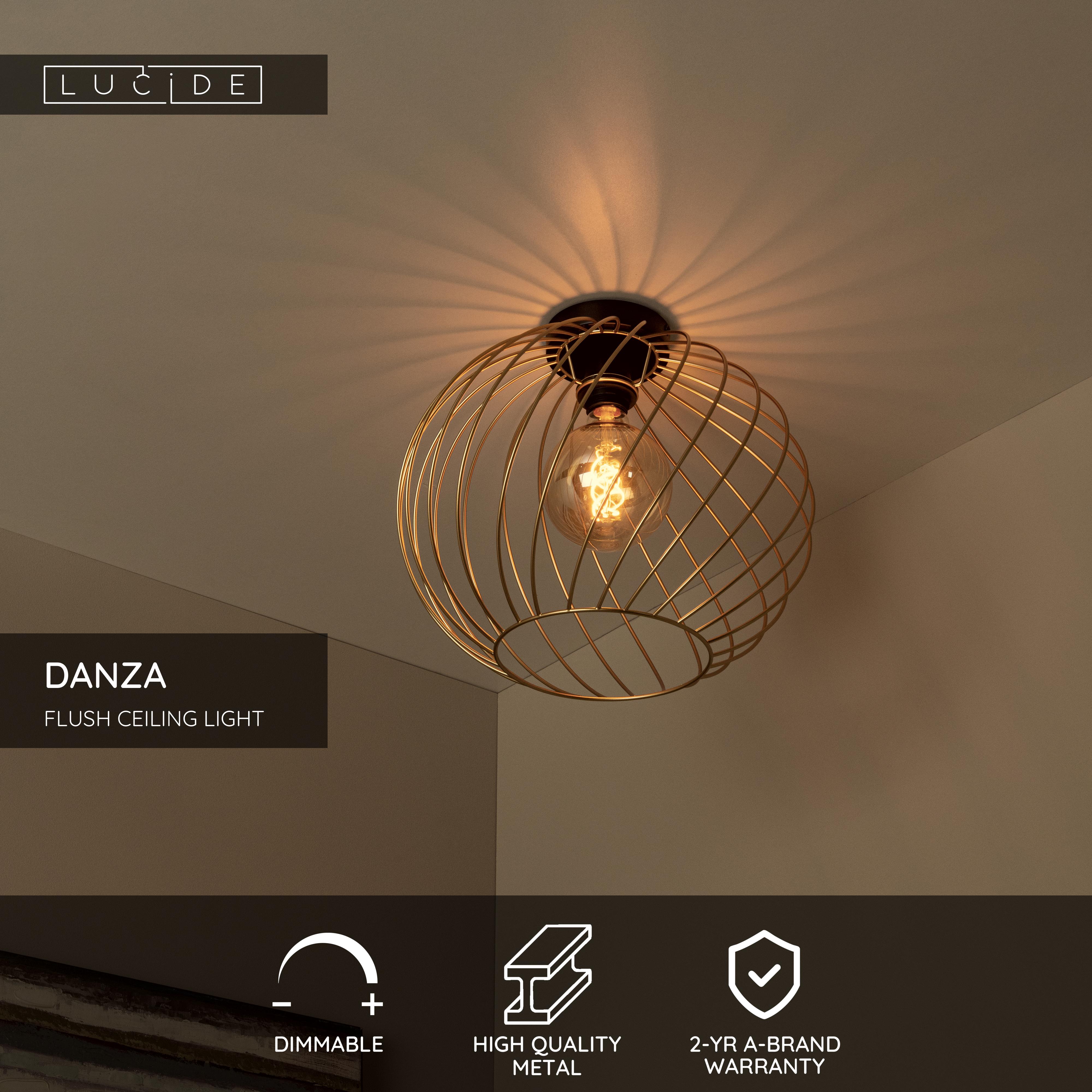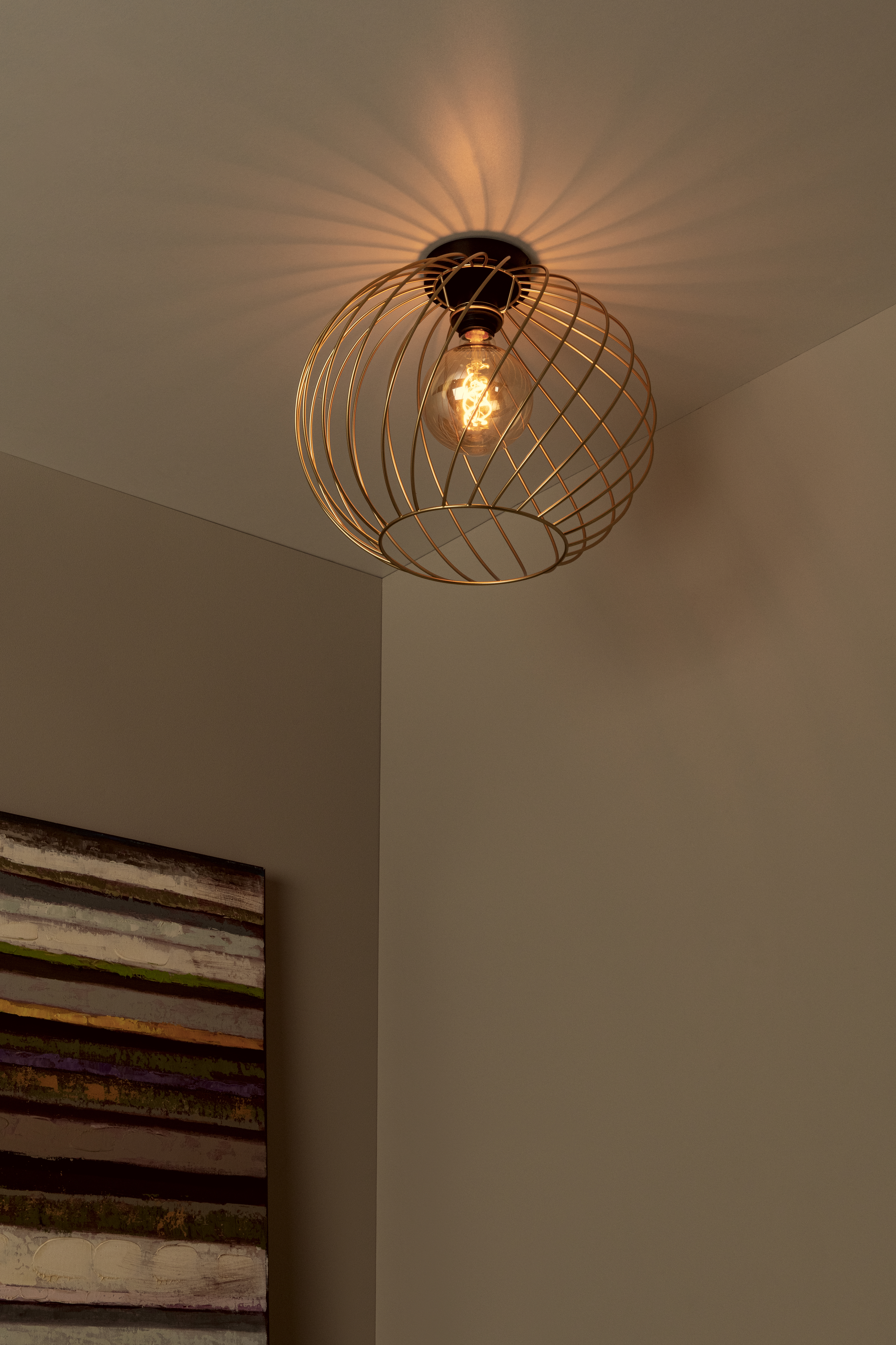 Bring this playful ceiling light into your home to enhance your interior. The spherical ceiling fixture frames the light source with fine, twisted metal wires. Thanks to its open structure, Danza looks beautiful paired with a filament light bulb. An external dimmer allows you to adjust the light intensity to suit your mood. Danza is perfect for any room: from a cosy living room to a welcoming kitchen or an understated bedroom. This ceiling light has a diameter of 40 centimetres and a height of 35.5 centimetres.