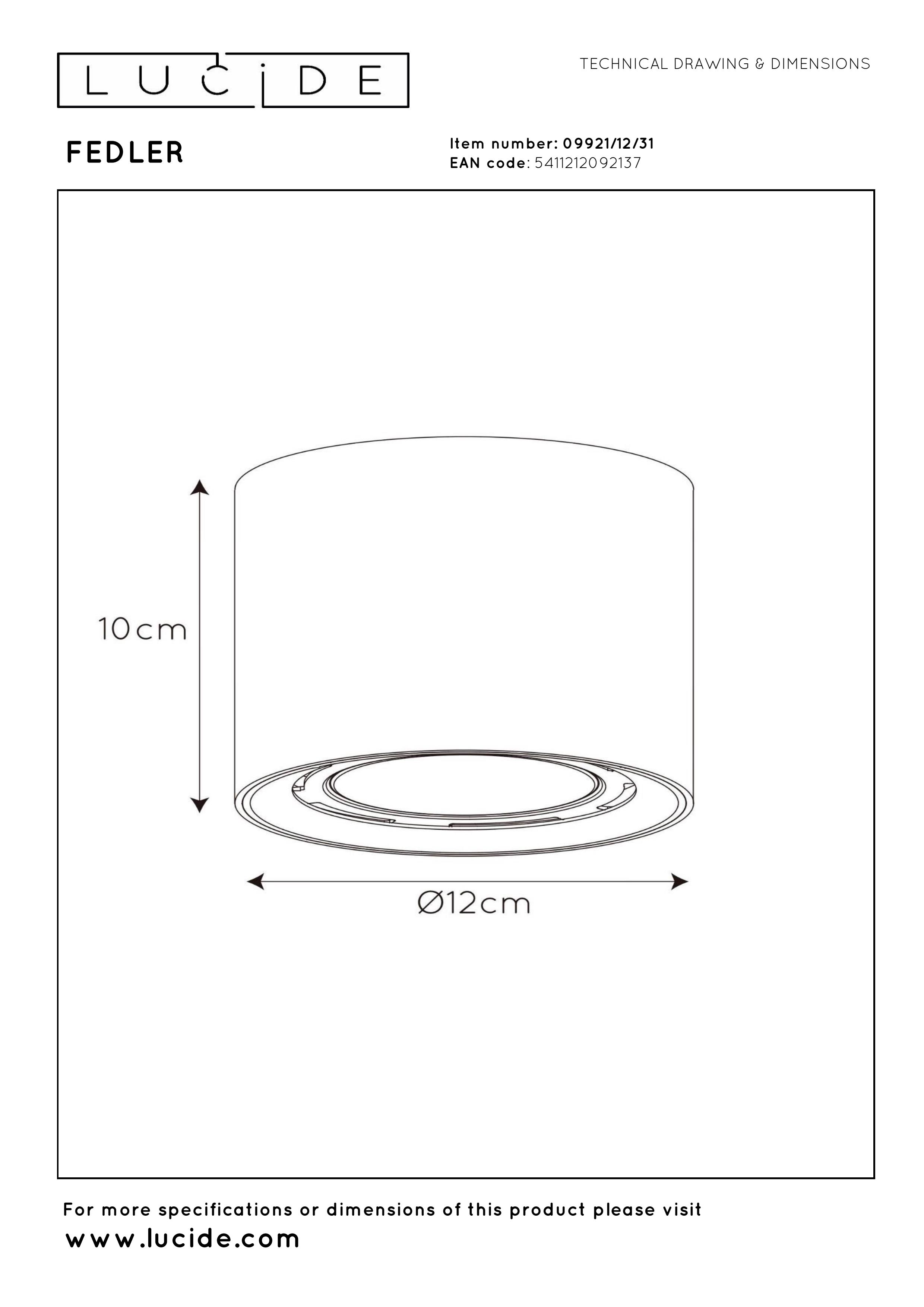 Ceiling spotlight Fedler is compact, geometrically perfect, has a modern appearance and a diameter of barely 12 centimetre. You can control the intensity of the included dim-to-warm led bulb by yourself after connecting the light to a dimmer (not included). Together with the intensity of the light, you can also change the colour temperature (3000K-2200K). Fedler is manufactured with high quality aluminium. You will enjoy a stylish and lightweight design. This also makes attaching the light to the ceiling very easy. Are you going to place multiple in a row or are your creating your own pattern of light?