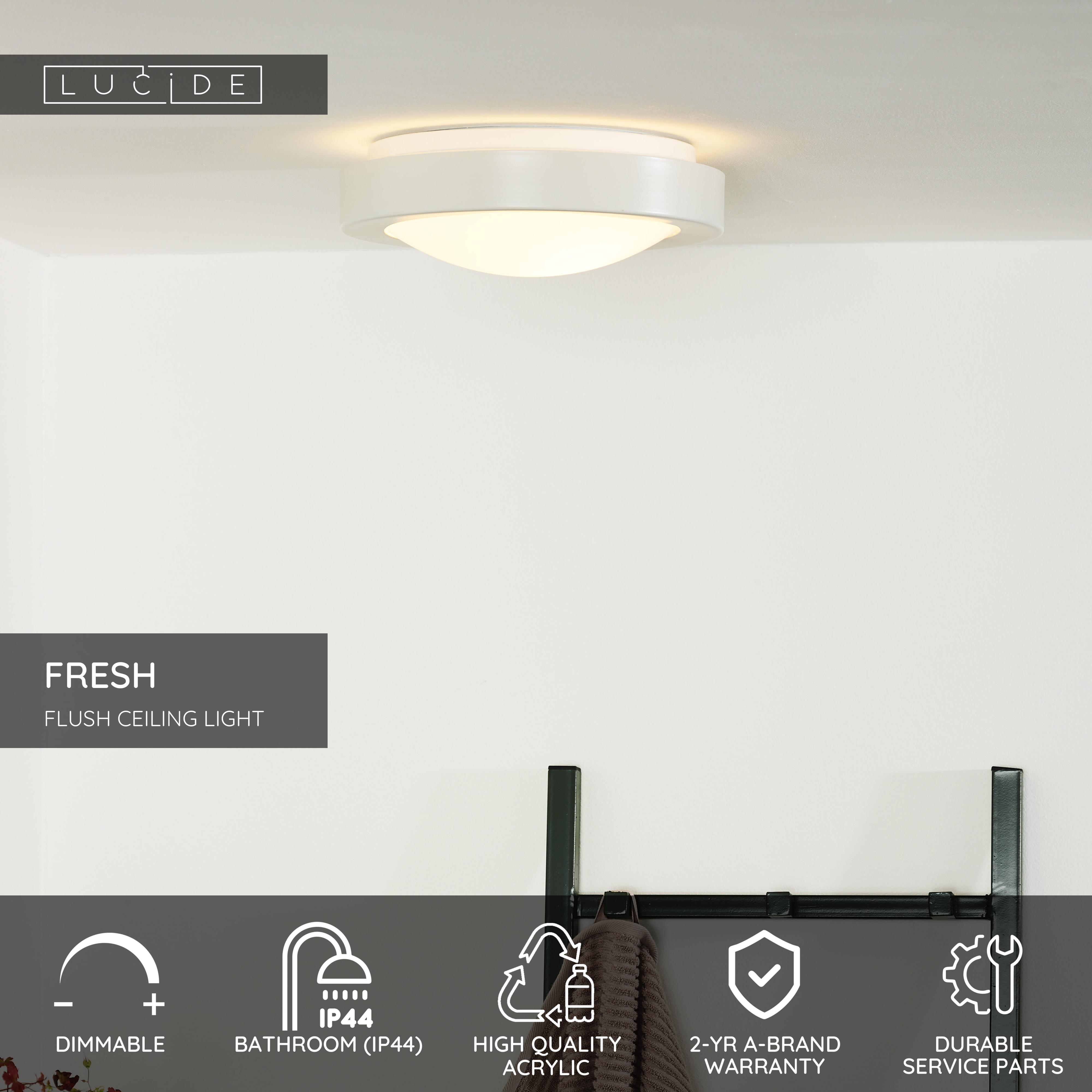 The Fresh ceiling lamp from Lucide wears its name very well! Fresh design with a thickness of 9,5cm integrates perfectly on any ceiling. In addition, the Fresh, with its IP value of 44, can also be placed in the bathroom. The matte chrome or matte white finish ensures a well-kept appearance. It has an E27 fitting so that you can choose to use energy-efficient bulbs.