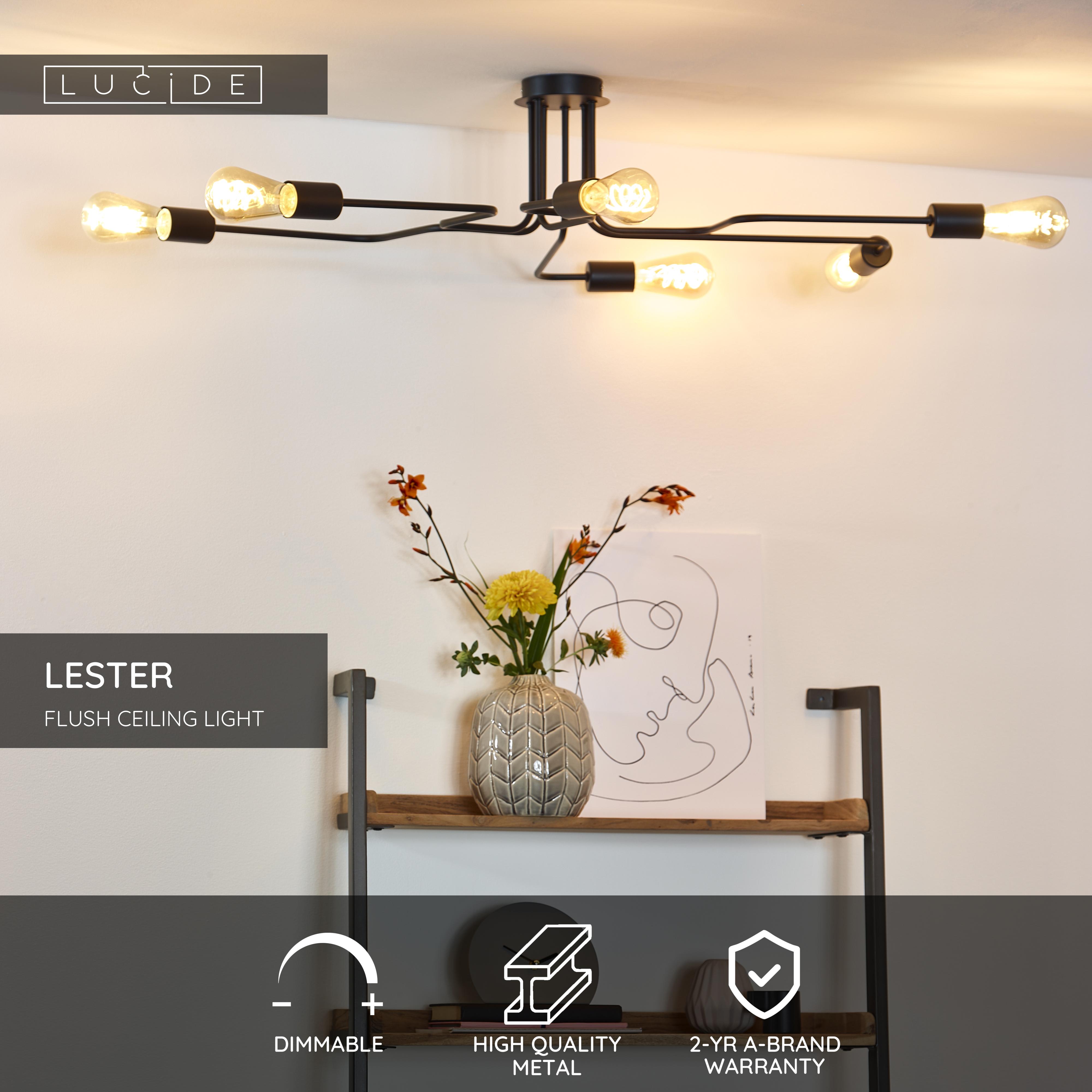 Lucide LESTER - Flush ceiling light - 6xE27 - Black