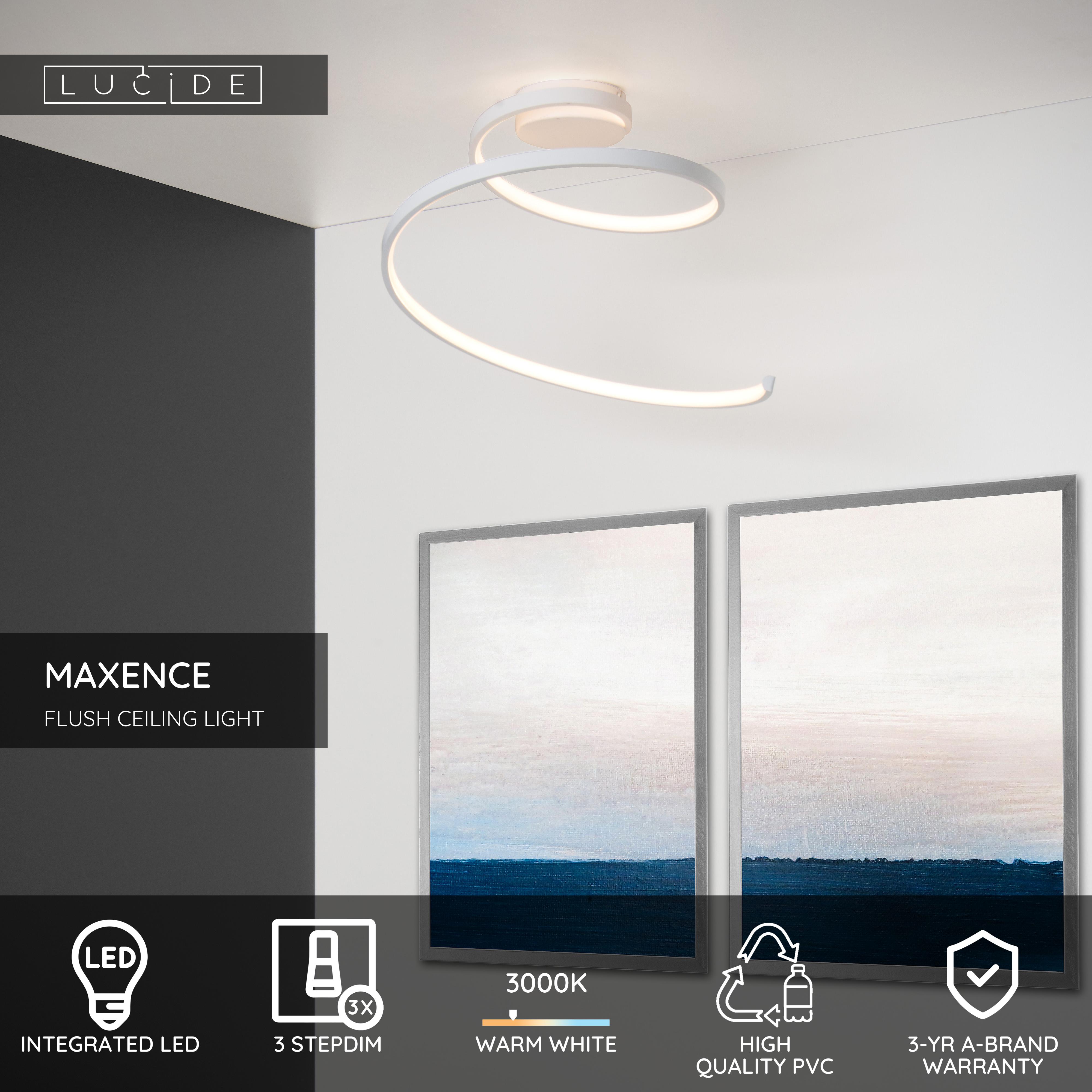 A light that rolls down? Step into the world of Maxence and give your home that extra cachet with this beautiful ceiling lamp. The twisted, PVC fixture extends over 35 centimetres. Mind you, Maxence can't just be forgotten in a corner. This ceiling lamp casts a unique light on your favourite painting on the wall or your showpiece on the commode. It also keeps you company in a reading corner in the living room. You can temper Maxence in 3 steps via the dimming function on the wall switch.
