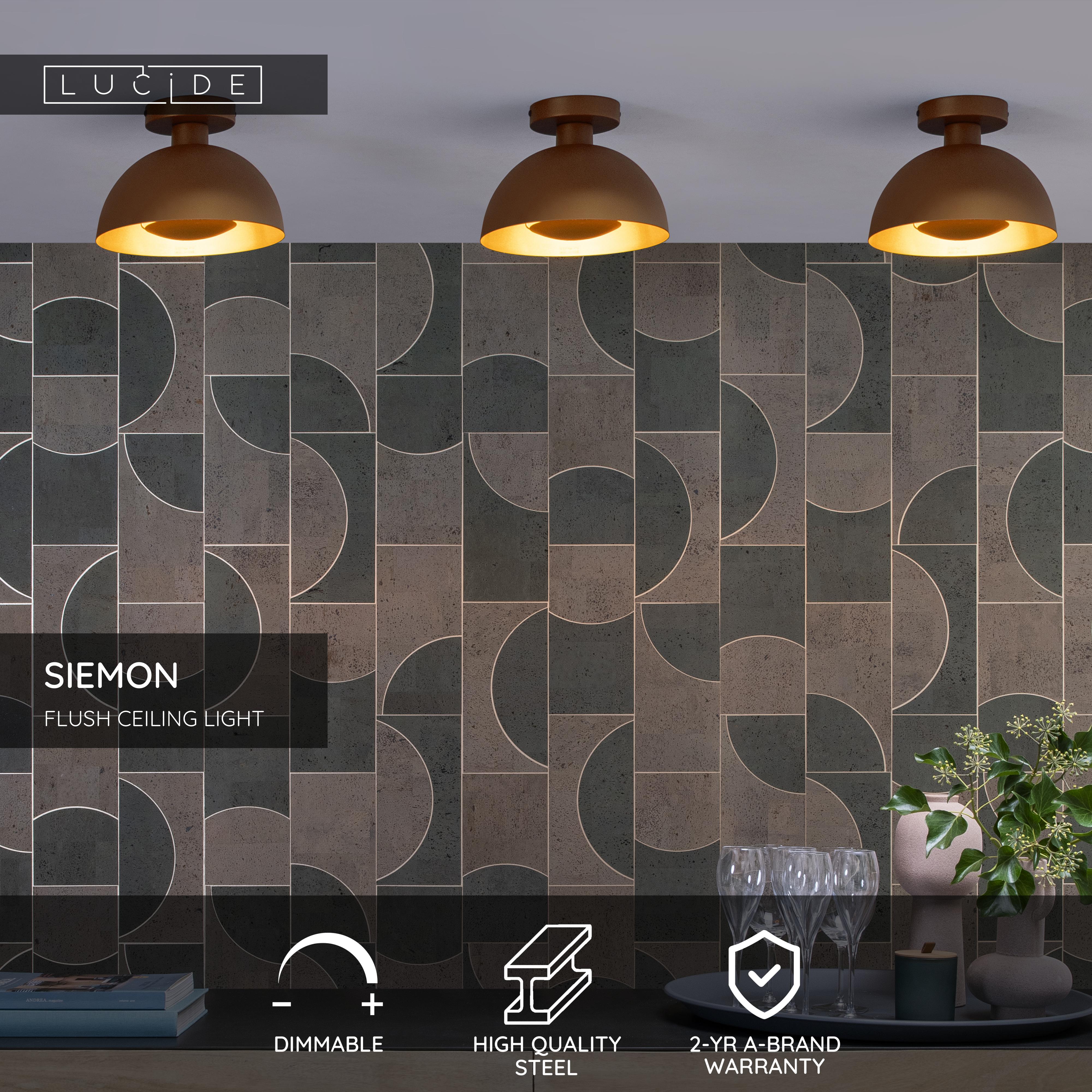 Siemon combines a hint of retro with a touch of modern. Two top ingredients for a successful ceiling lamp in your hall, living room or kitchen. This ceiling lamp is made of high-quality steel, has a diameter of 25 centimetres and weighs only 800 grams. Because of its design, Siemon looks adorable and modern at the same time. In the middle of the semi-circular lampshade, you will find a round disc that clamps itself above the light bulb. This way the light is reflected perfectly along the walls of the lampshade. Connect this lamp to a dimmer for an optimal atmosphere.