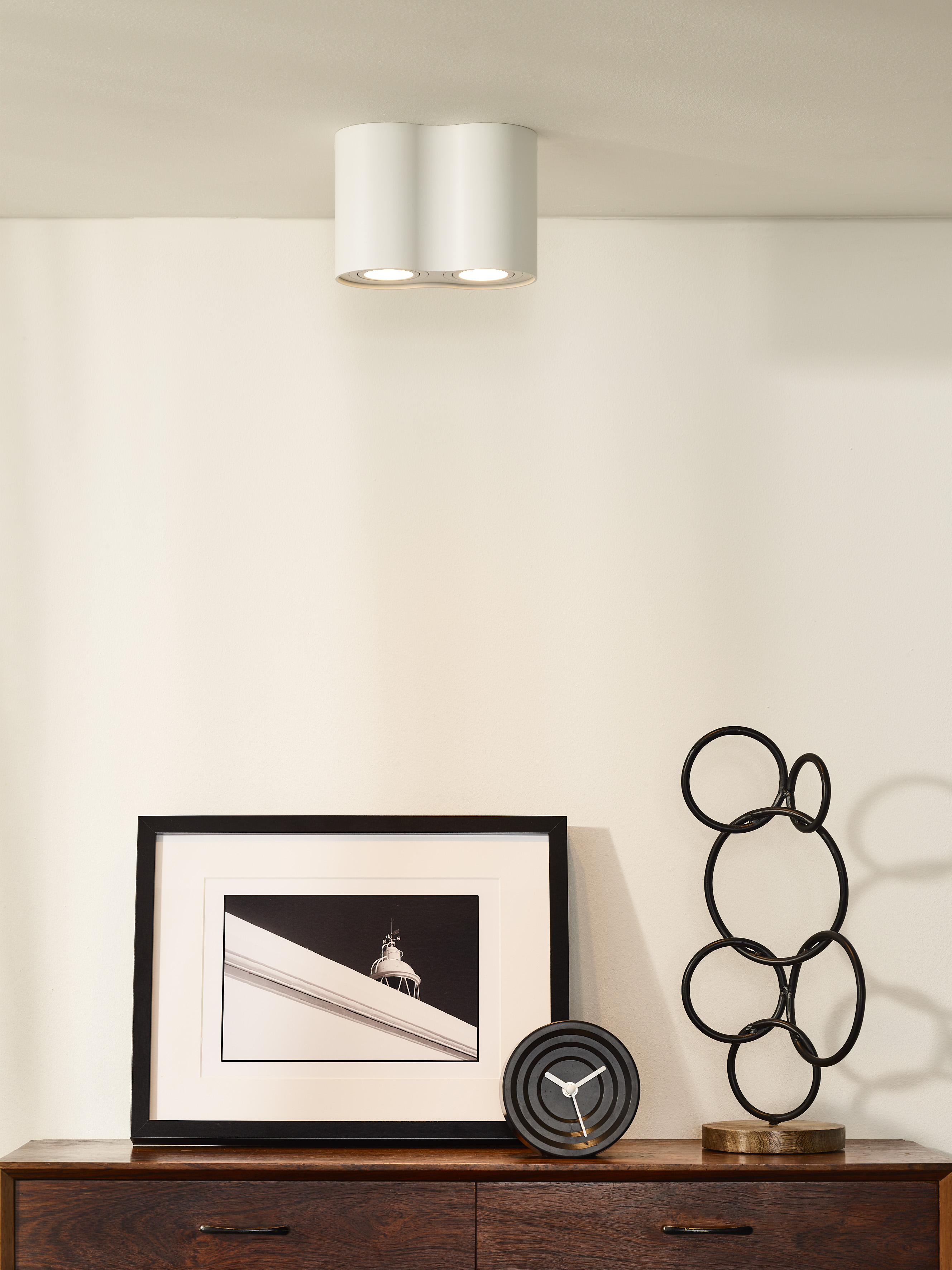 The mounted spot Tube 2-light round from Lucide is an armature lamp made completely of aluminium, and it therefore has a very high-quality appearance. With a size of 9.6cm x 17.5cm, it is easy to place on a central box. This article is outstandingly suitable as a light in a small hall or toilet. Placed in series, the Tube is also perfect to use, for example, above a bar or kitchen counter. With its 360 degree swivelling and tilting spot, the Tube can be focused on any desired point in the room. The Tube is fitted with a GU10 high-voltage fitting and is delivered without a light source. You have the choice of using a beautiful - dimmable or non-dimmable - GU10 LED spot or a traditional dimmable GU10 halogen spot. The Tube is available in the colours aluminium and white.