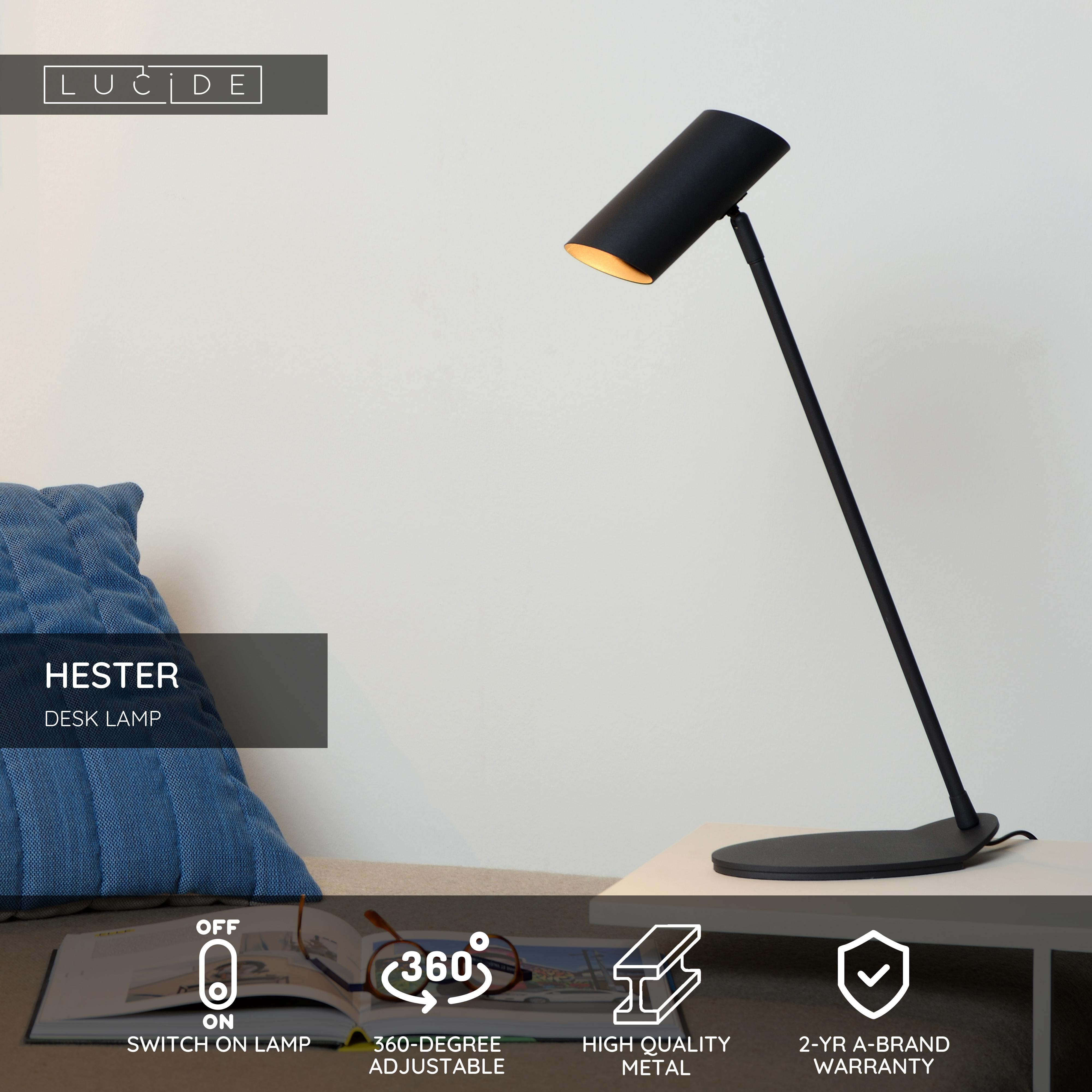 A desk lamp that is both sophisticated and functional? Hester proves that it's possible. This metal desk lamp is an eye-catcher on your desk. At home or in the office: Hester shows its class anywhere. With a handy switch, this desk lamp stands for pure convenience. Hester has an elegant appearance that works everywhere. Just like you. Did you know that the desk lamp is open to LED lighting? That lets you enjoy a relaxing lighting with low energy consumption.
