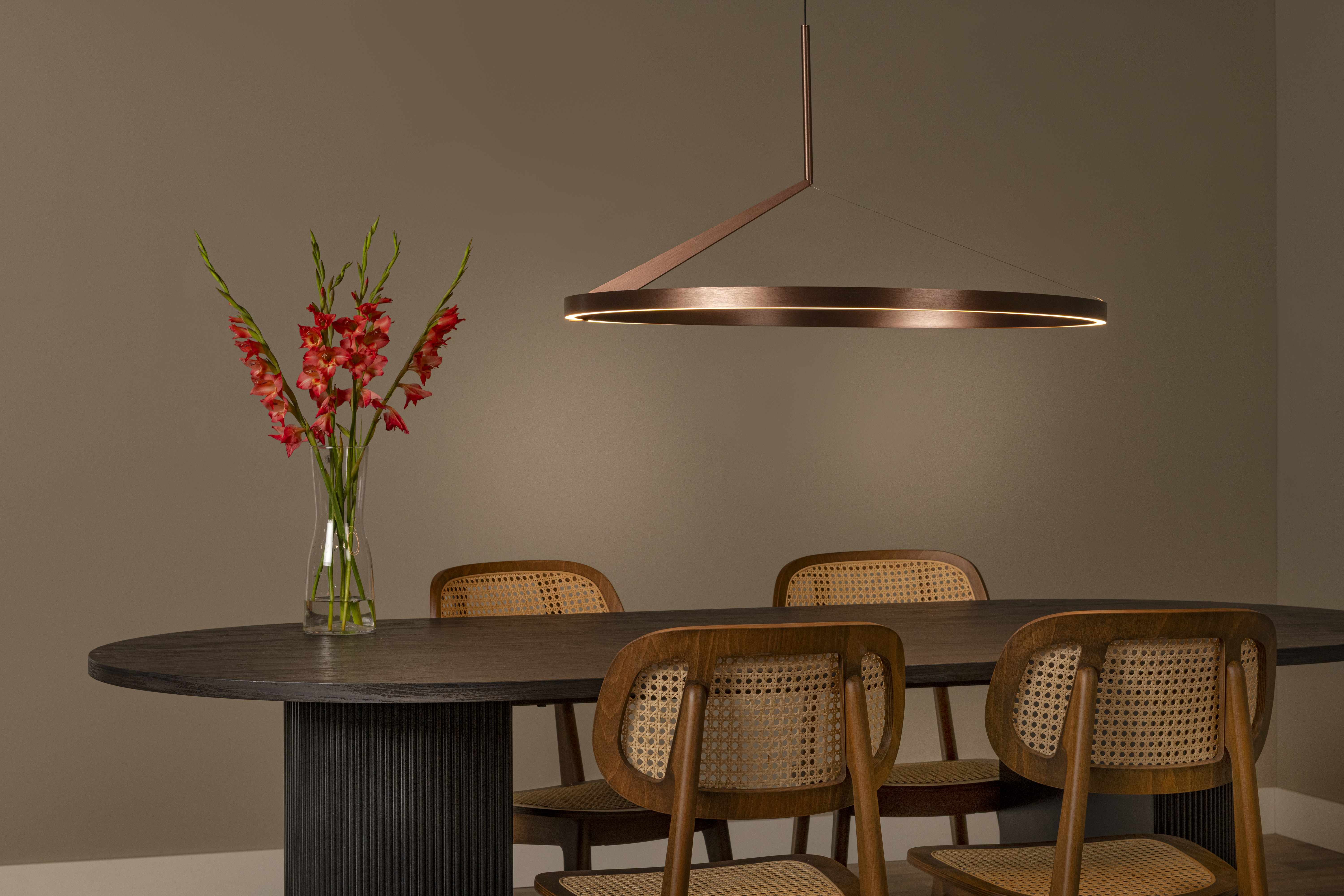 Refined proportions and intuitive ease define the APPLAUSE pendant light. With a generous 80 cm diameter and industrial grey iron finish, this Premium hanging lamp brings sculptural impact to modern interiors. The integrated 50W LED delivers diffuse light all around, with adjustable color temperature from 2700K to 4000K. A built-in hand wave sensor enables touch-free dimming, while the height can be easily adjusted using the smart pulley system, ideal for dining areas, workspaces, or large open spaces. The ceiling plate has a diameter of 12 cm. With a width and depth of 80 cm and a height adjustable from 70 to 176 cm, APPLAUSE offers a perfect balance of design and functionality. This product must not be connected to a wall switch and can only be operated using the controls on the product itself.
