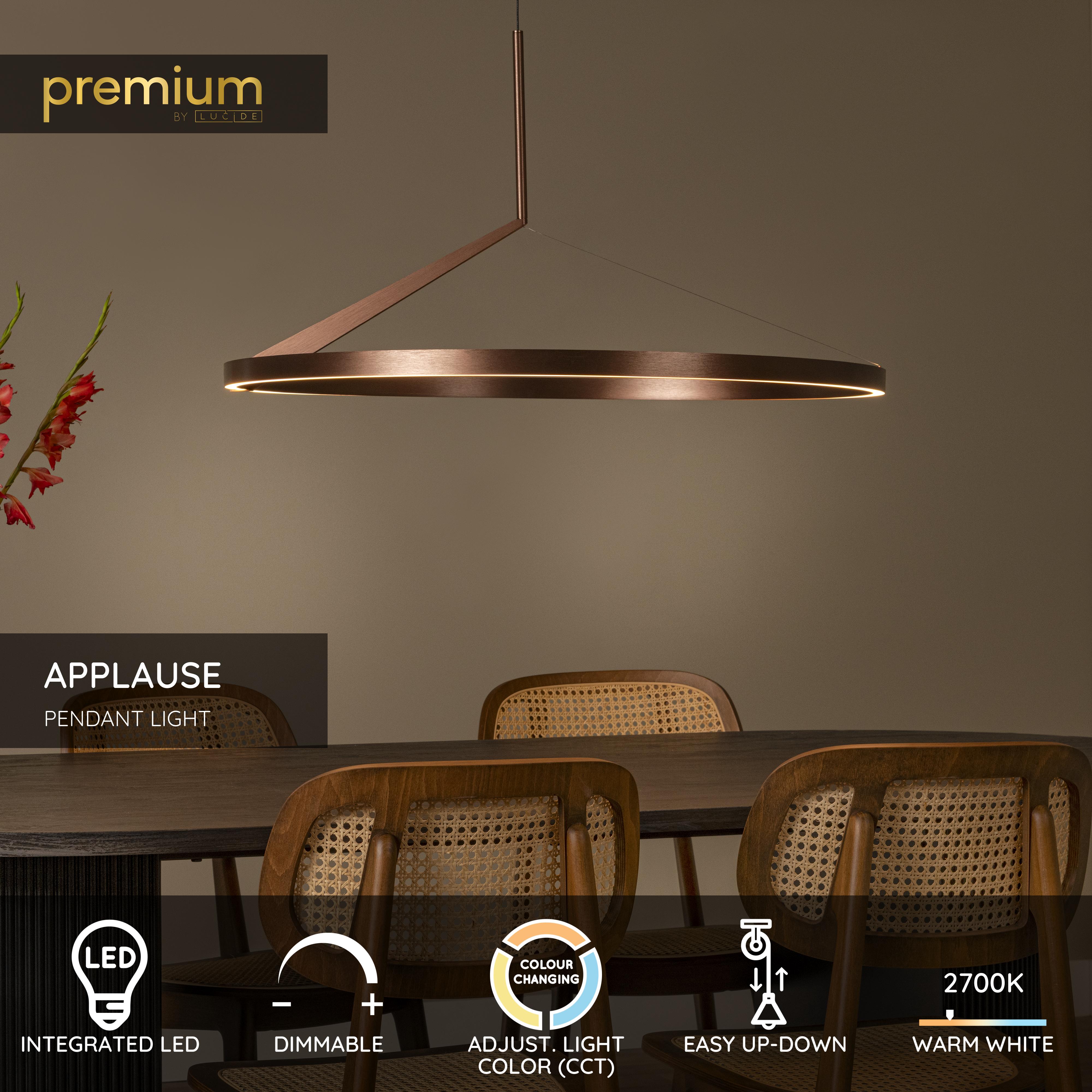 Lucide APPLAUSE - Pendant light - Ø 80 cm - LED Dim. - CCT - 1x50W 2700K/4000K - Hand Wave Sensor - Coffee | Premium