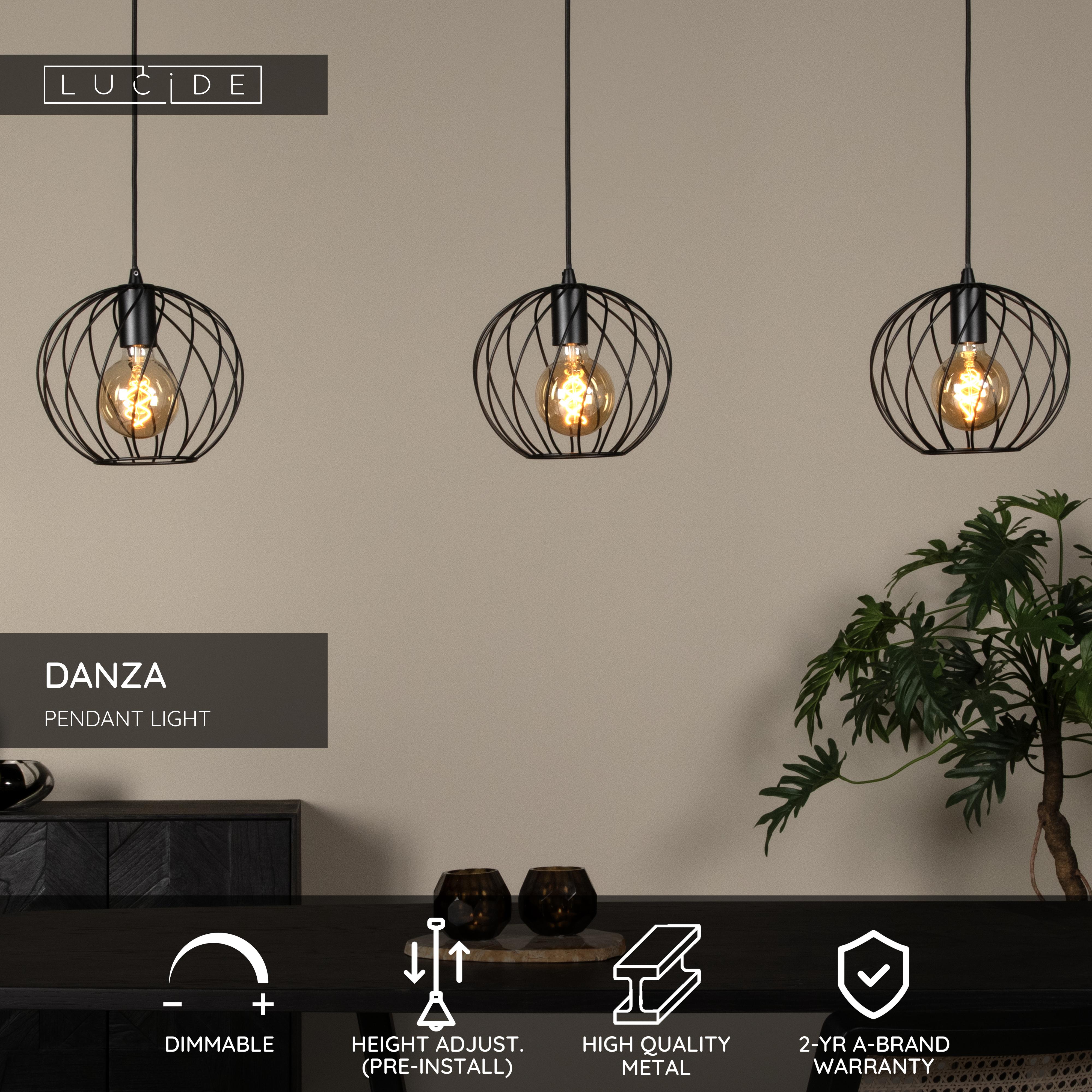 Lucide DANZA - Pendant light - 3xE27 - Black