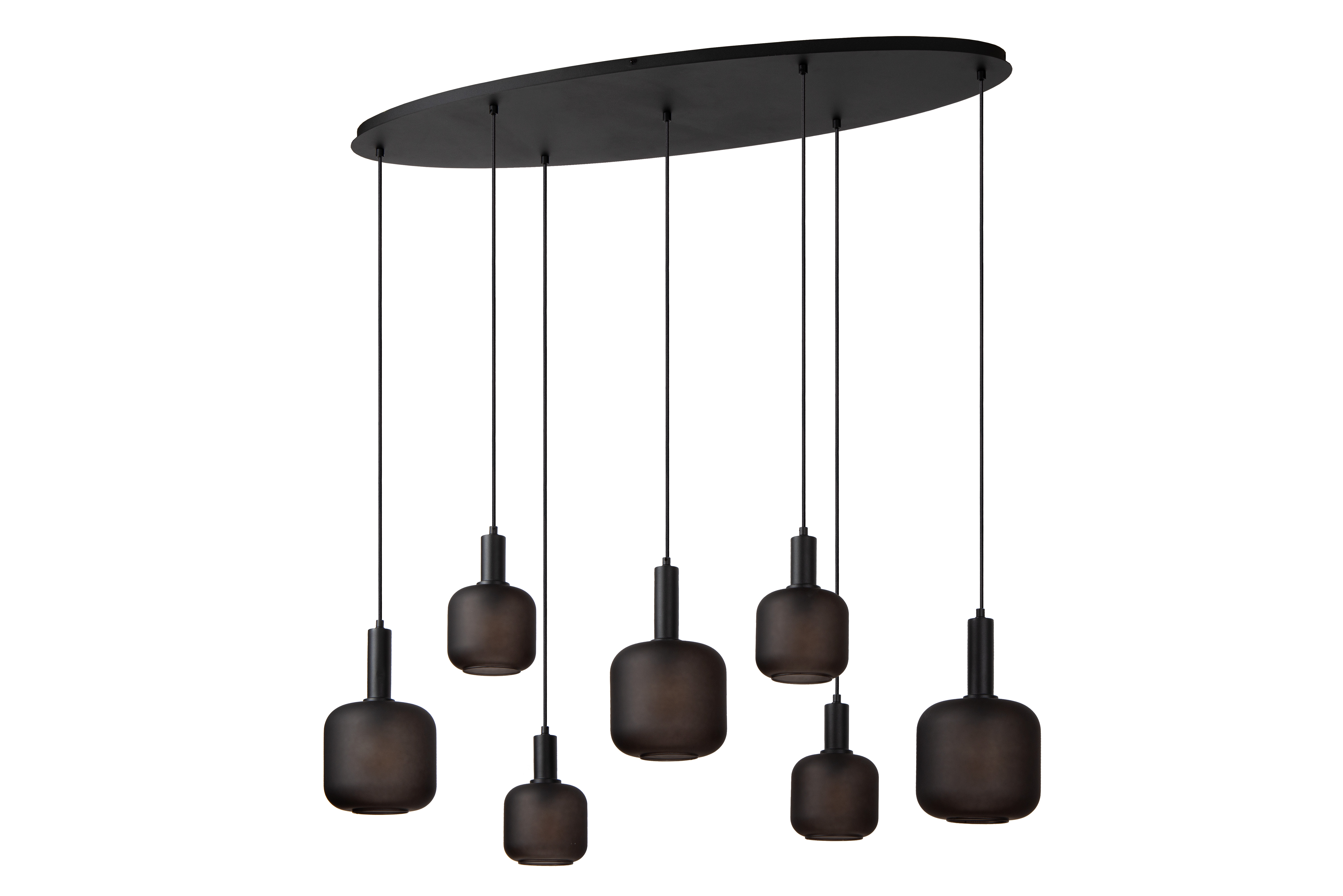 Elegant and extravagant: Eloise strikes the right balance with no less than 7 fumed glass pendants. The lamps can be hung at the same height or playfully suspended at different heights, arranged in a circle on the metal mounting plate. Each pendant is 21 centimetres in diameter, made of high-quality glass and adjustable in height. Add to this the fact that it can be connected to an external dimmer, and you've got a pendant light that's easy to adjust to your taste. Intimate or bold? Rely on Eloise to add a touch of drama to your living room or bedroom.