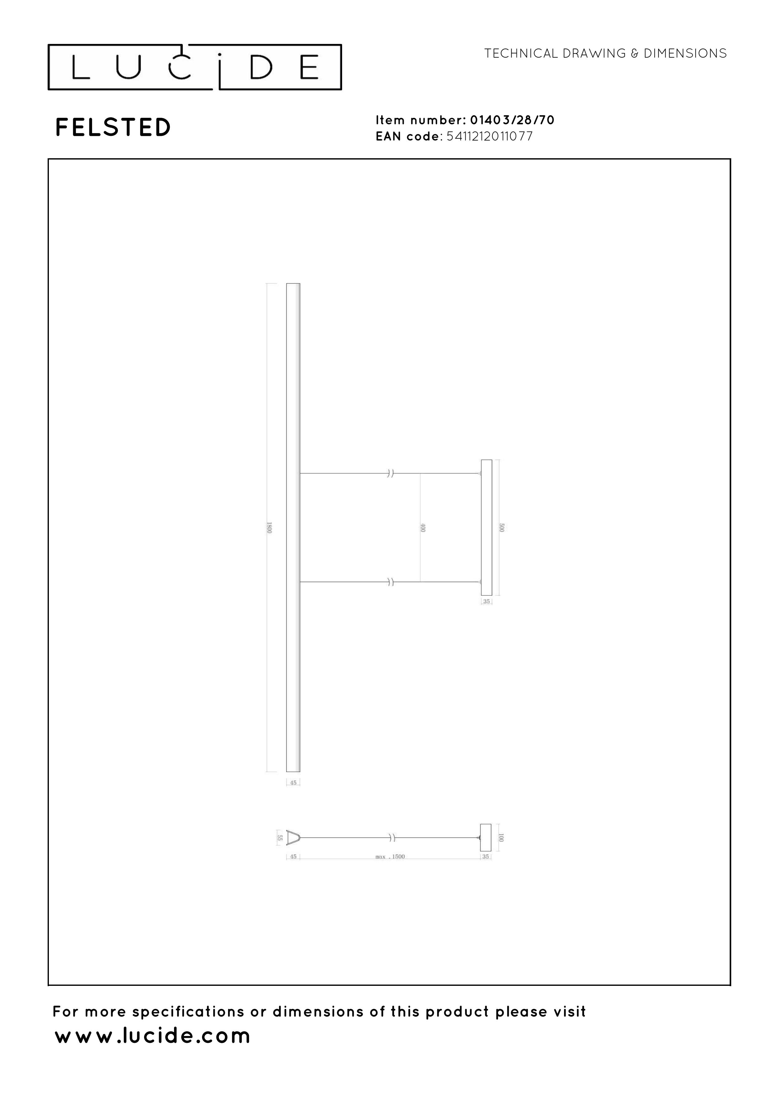 The FELSTED pendant lamp by Lucide elevates your interior to the next level. This stunning pendant combines stylish Japandi design with practical functionality. The integrated LED lighting (28W) provides energy-efficient, atmospheric light, with color temperature easily adjustable via a DIP switch (2200K to 4000K). The height can be set before installation, allowing you to choose the perfect position above dining tables or workspaces. With a width of 180 cm, a depth of 6.5 cm, and a height of 158 cm, this pendant is perfect for spacious interiors. Choose luxury, sustainability, and ambiance with FELSTED.
