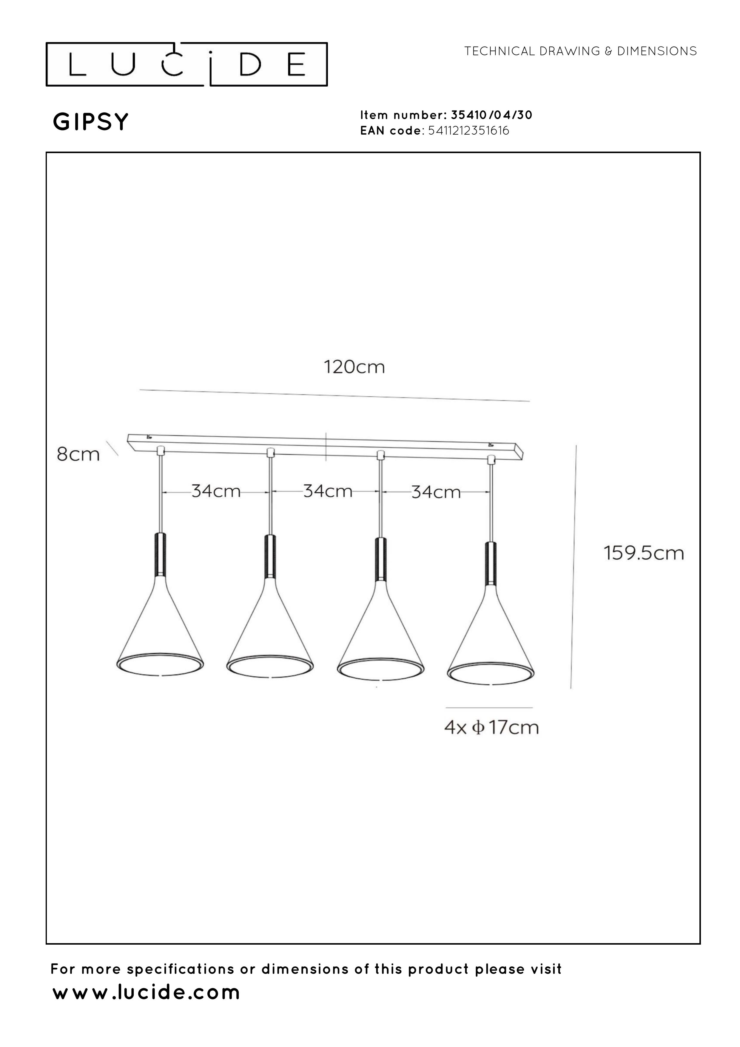 Four in a row, that is this Gipsy. The sleek design of this pendant light is a perfect companion in a modern or rustic interior. The pure shapes ensure that any environment receives the attention it deserves, whether it is over the dining table or as pendant light over your coffee table. The sleekly designed pendants are adjustable in height by manually shortening the cord. The concrete look of the lamp shade finishes the artisanal look.