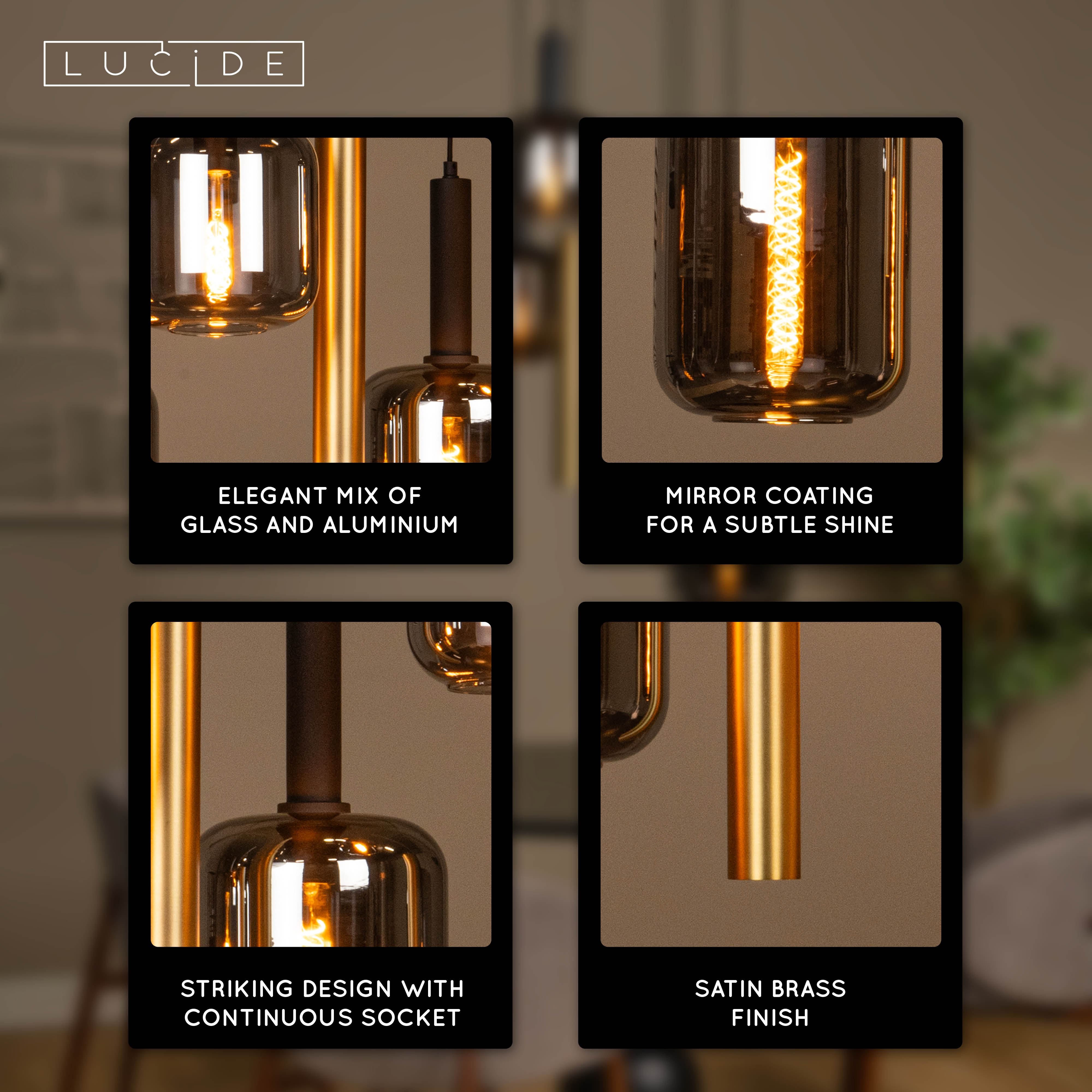 More is better. At least, that is the case with this pendant light, named Joanet. Not one or two, but as many as six light points dangle down stylishly from the mounting plate. Surrounded by an elegant glass shell, with a dialogue between bright and fumé areas. The varying sizes of the glassware add dynamic to the luminaire. To enjoy the magic to the max, choose filament lamps. Connect Joanet to a dimmer to immediately bring in a real mood maker.