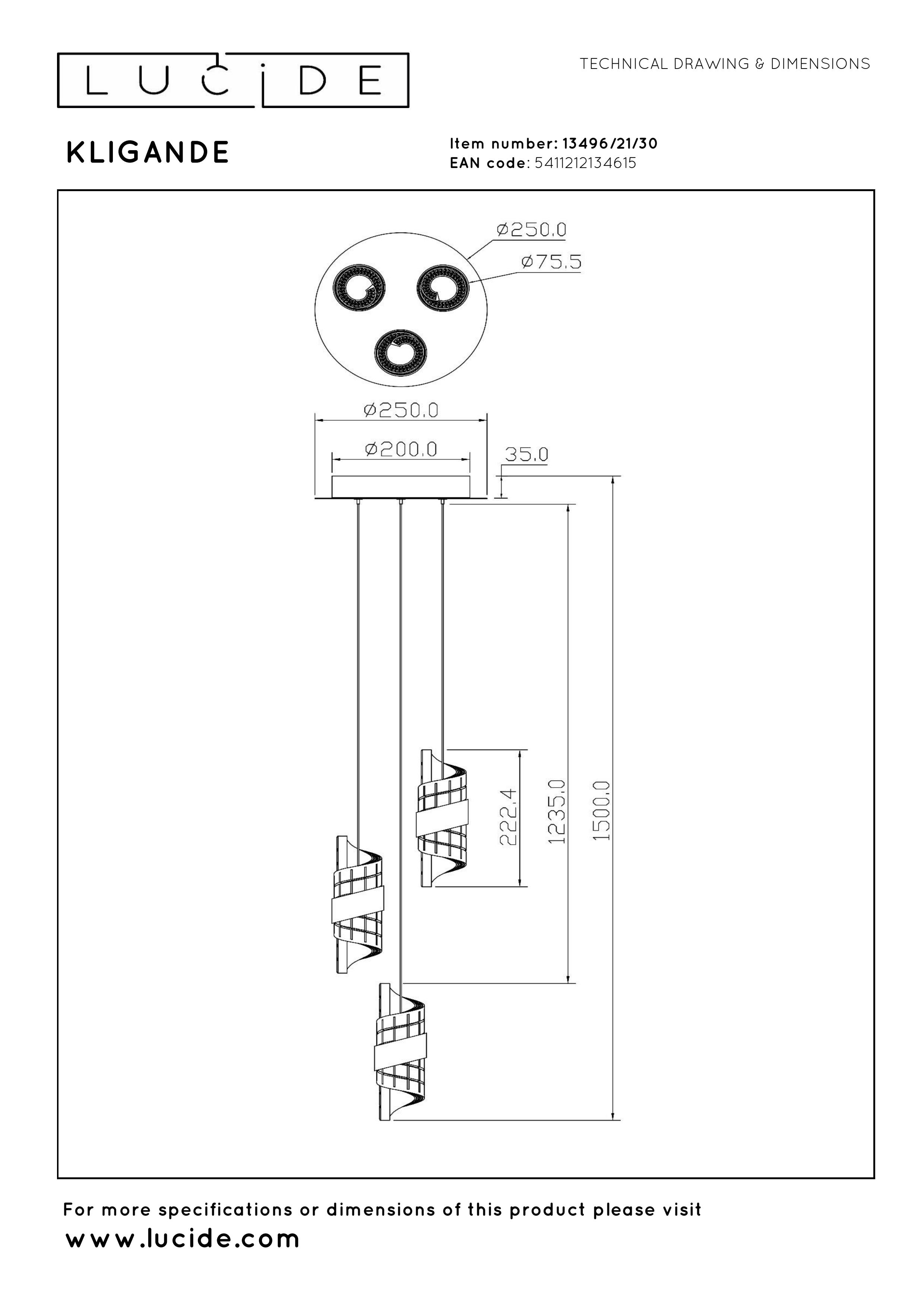 Kligande is the ultimate combination of elegance and functionality. This round, versatile light fitting with 3 pendants is suitable for any room in the house. The lights are easily adjustable in height and can be connected to a dimmer, allowing you to create the perfect atmosphere for any occasion. The lampshades are finished with a metal band and add a touch of sophistication to any room. The built-in LED bulbs provide a deep, warm glow to create a truly homely atmosphere. The timeless design fits effortlessly into any decor style: modern, classic or industrial.