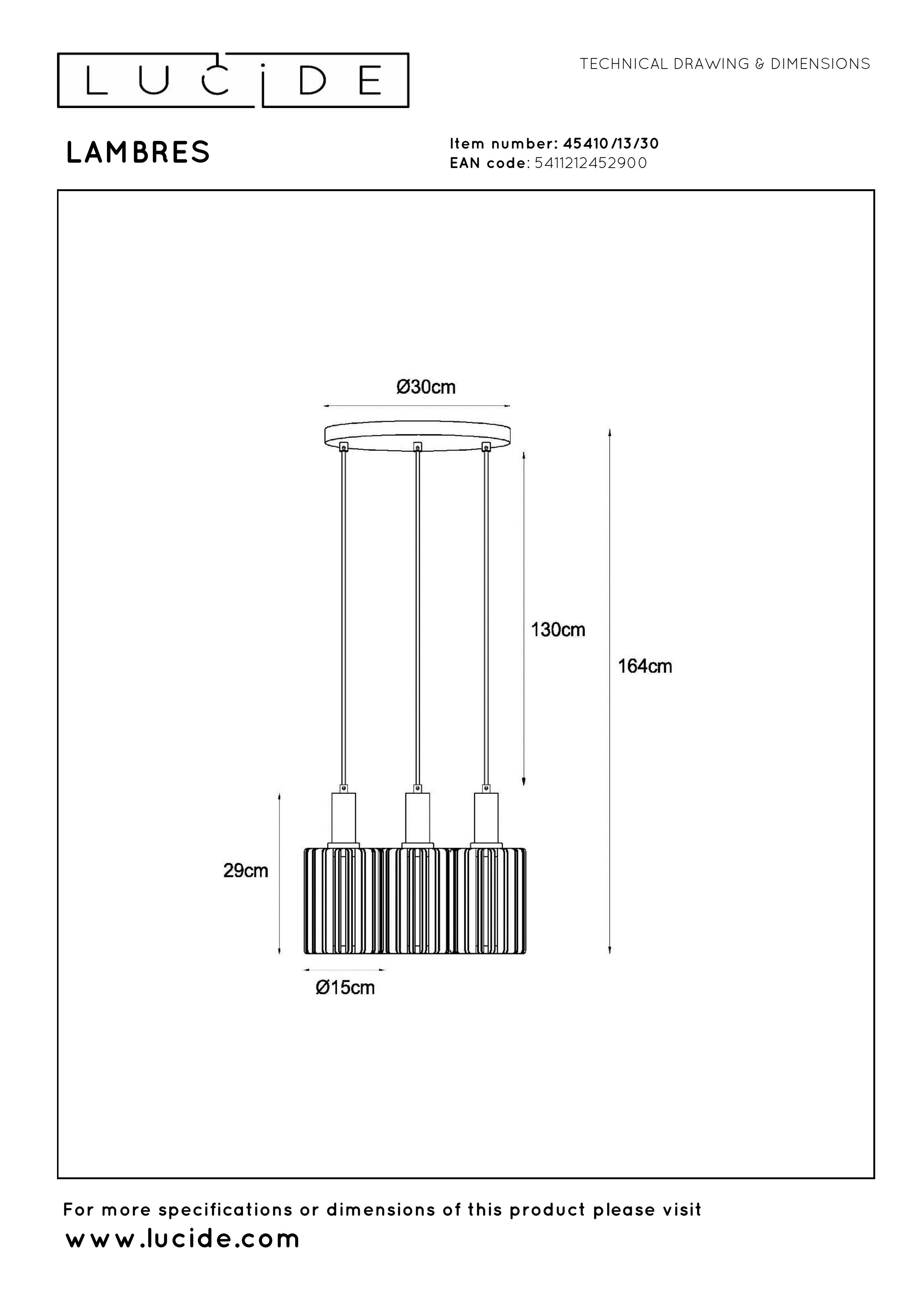 You can't go wrong with Lambres. This elegant pendant lamp with three pendants is a real showstopper. Each pendant features a frame of fine metal slats that enclose a frosted glass diffuser, creating a consistently soft, diffused warm white light. You can easily adjust the height of the pendants during installation. If you connect this magnificent chandelier to a dimmer, you can add even more ambience to your home. So what are you waiting for?