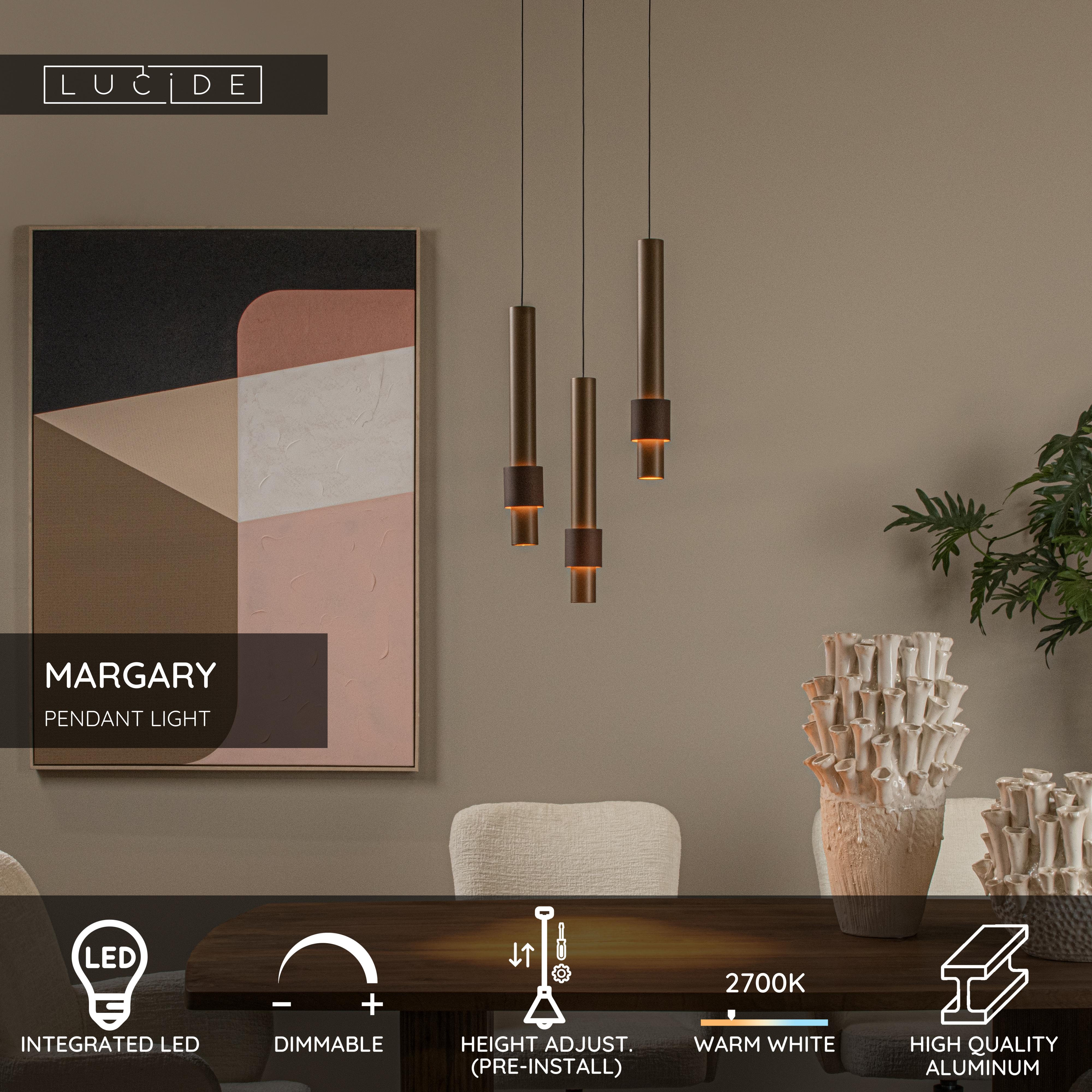Lucide MARGARY - Pendant light - Ø 28 cm - LED Dim. - 3x4W 2700K - Coffee