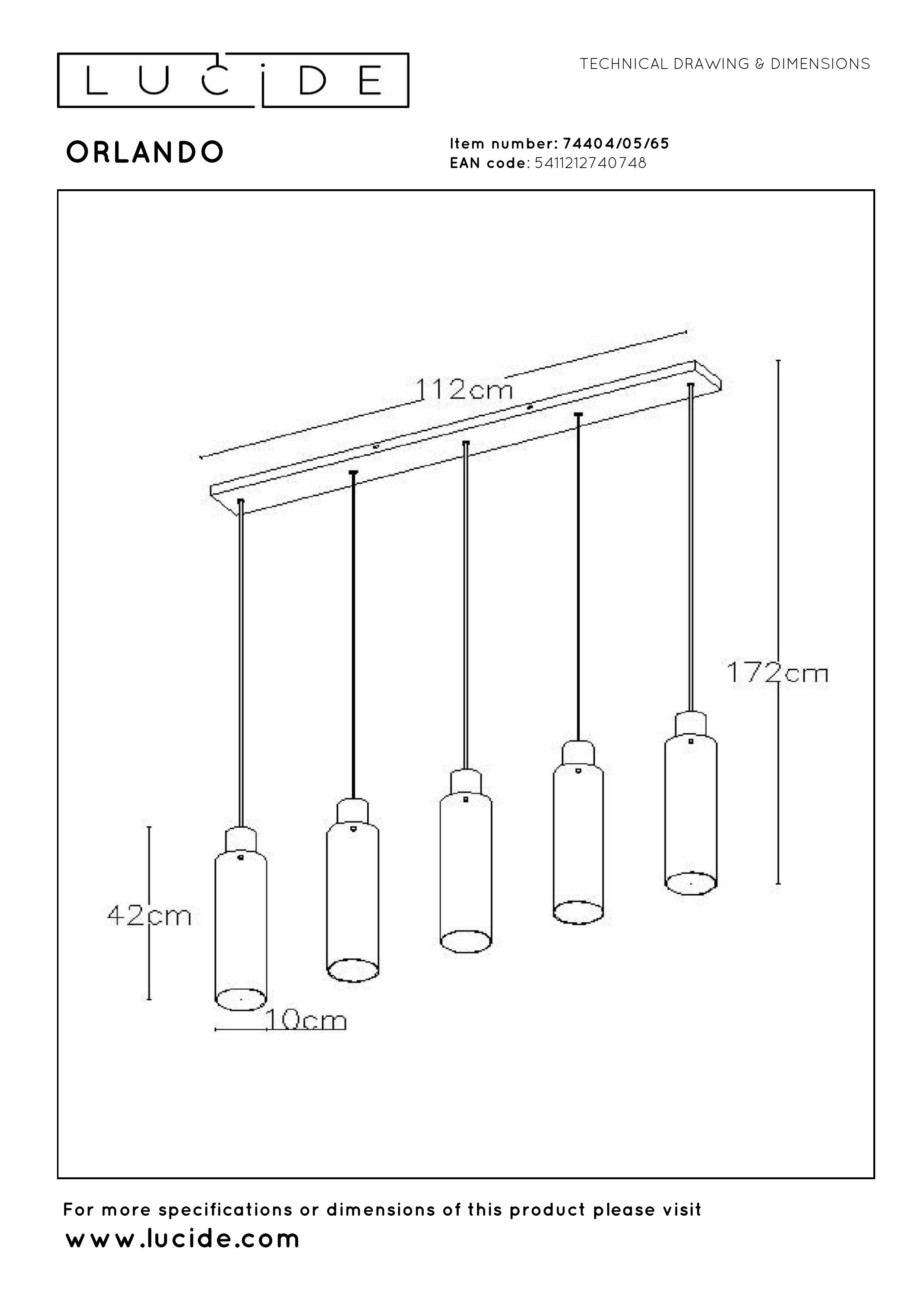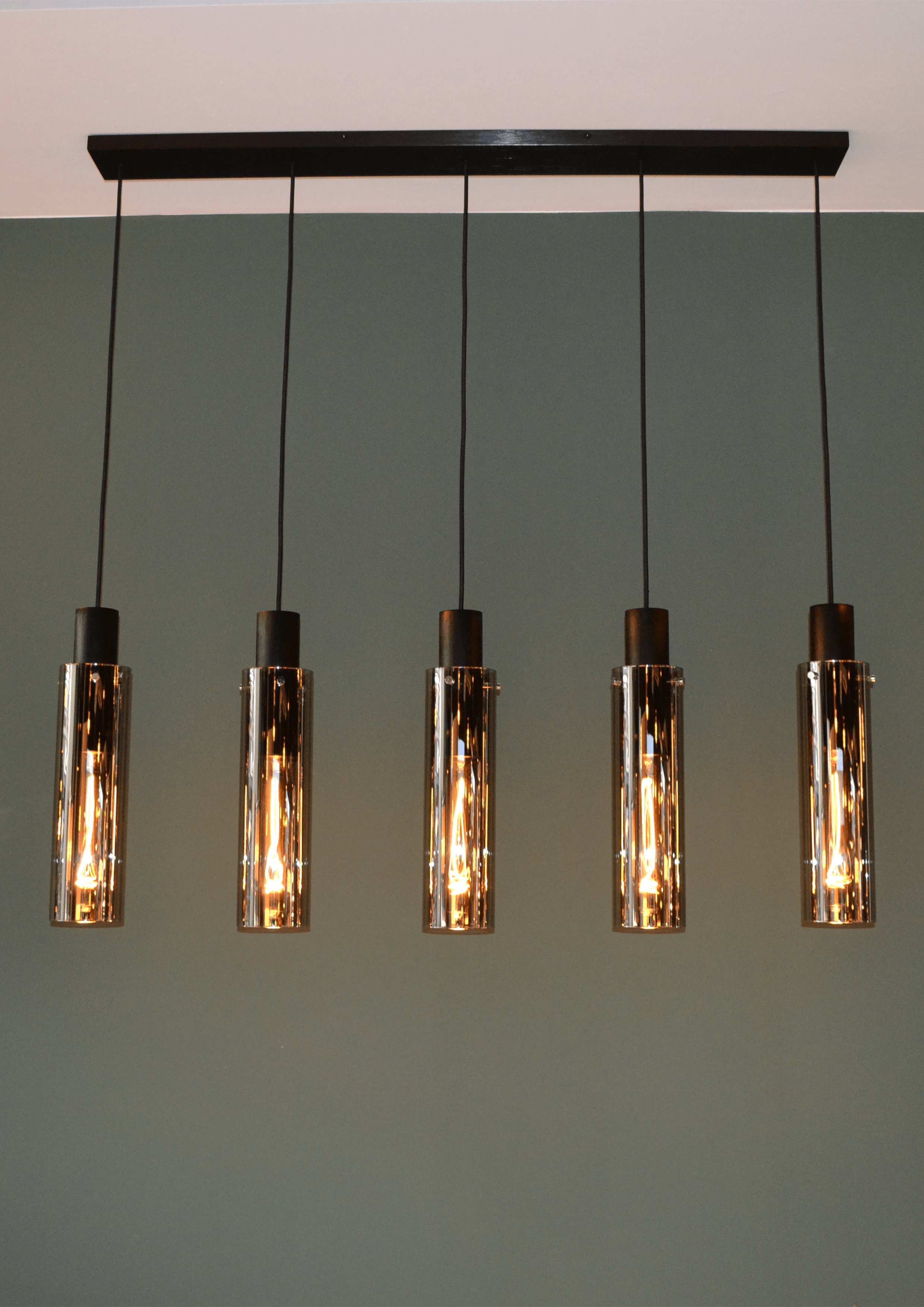 Five lightsources means five times the mood and style. This version of the Orlando pendant light is the perfect companion for a modern dining room. The black smoked glass gives the room a mysterious and cosy glow. Especially when combined with a tubular filament bulb, also in smoked glass. You can let Orlando shine optimally by hanging it at the right height in the room. You can adjust it yourself, from 120 to 172 centimeters. Connect it to a dimmer and create the right mood for every dinner occasion.