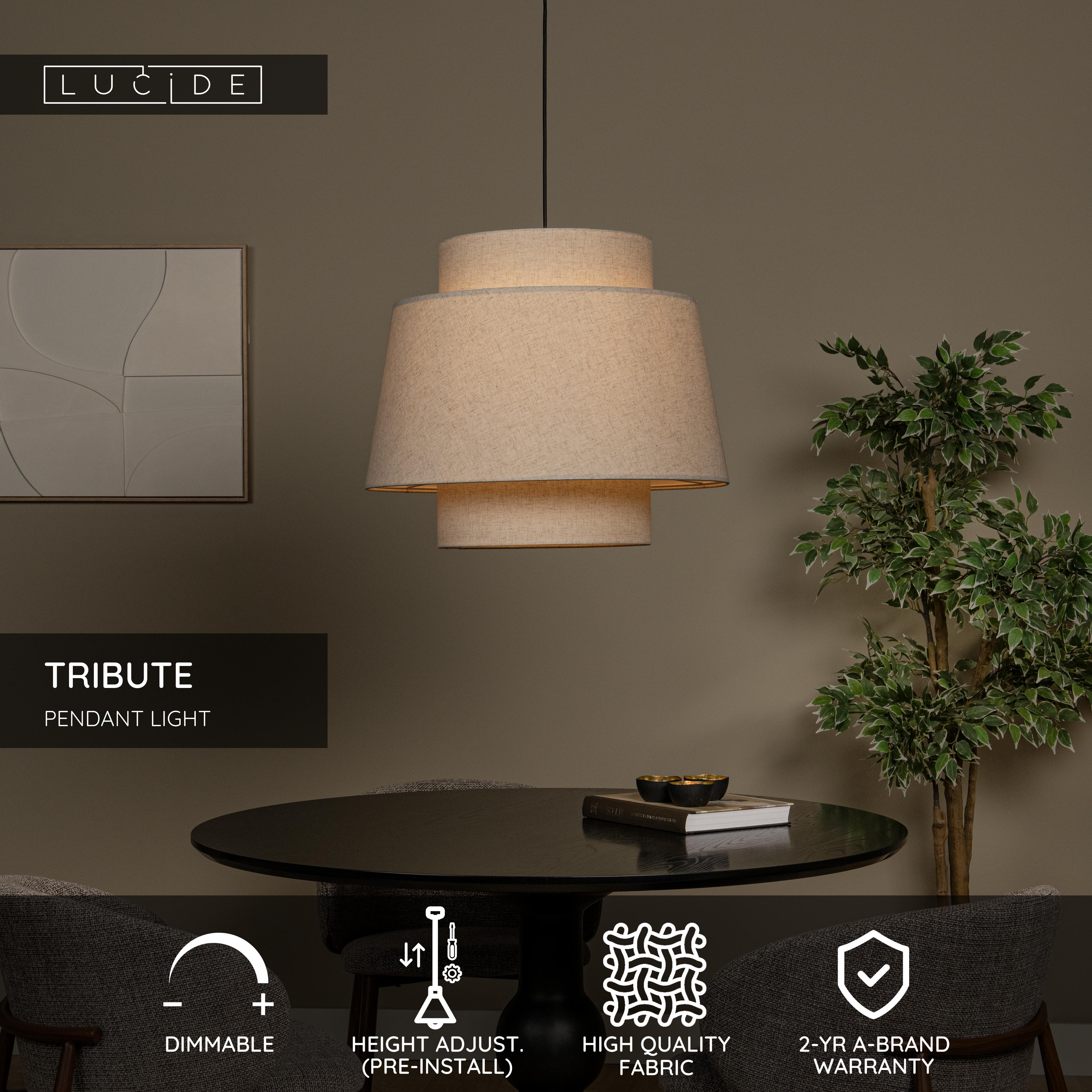 Are you looking for a soothing, warm light in a design that looks natural? Meet Tribute. This pendant light features a high-quality textile shade with an inner cylindrical structure and an outer A-line structure, creating a playful, diffused effect. This pendant light is ideal for a dining or seating area, but will also work well in your kitchen. You can easily connect Tribute to an external dimmer for extra ambience. The pendant lamp has a diameter of 60 centimetres and can be adjusted in height to a maximum of 180 centimetres.