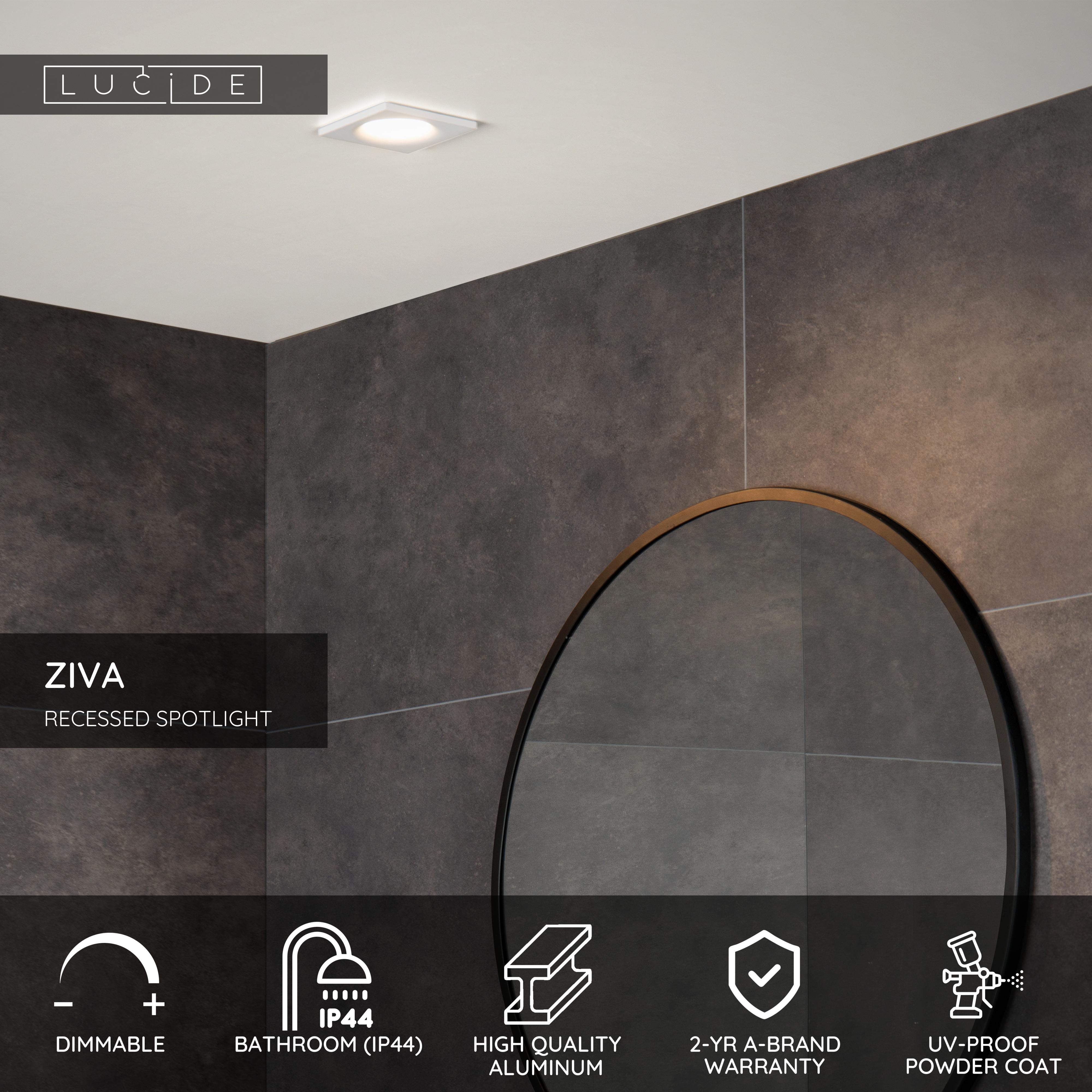 This square recessed spotlight is named Ziva. It is a fun alternative to the classic round spotlight. The simple design looks sleek thanks to the use of high-quality aluminium. With a size of 8.5 by 8.5 centimetres, the spotlight is compact, so it doesn't stand out too much while still giving off enough light. Perfect for bathrooms. You can combine Ziva with a dim to warm lamp. With a compatible dimmer, you can set the colour of the LED lamp, from warm to white light. This creates an extra warm and cosy note to your modern bathroom. Ziva is also suited for humid rooms, such as your modern bathroom.