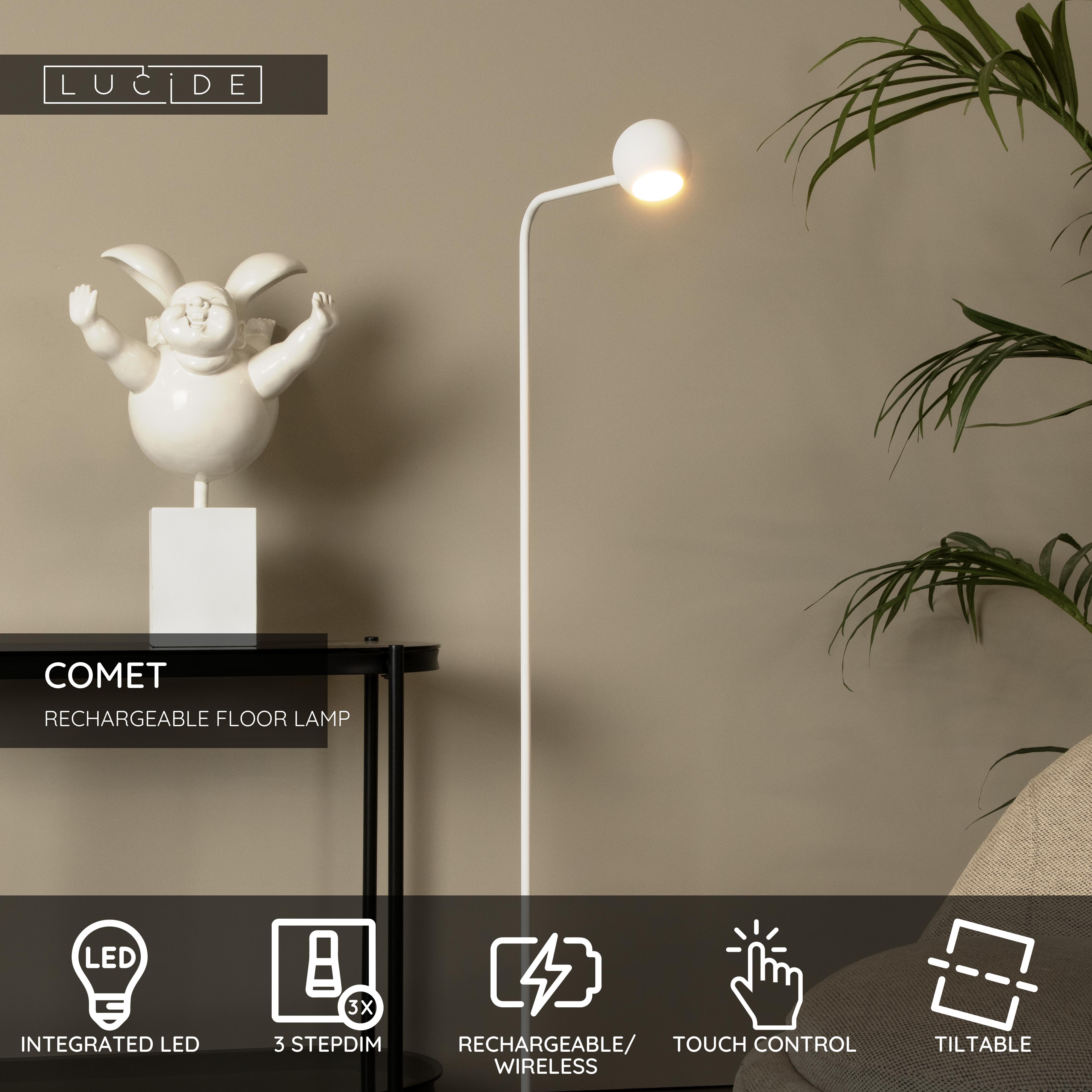 Lucide COMET - Rechargeable Floor lamp - Battery pack- LED 3 StepDim - 1x3W 2700K - White