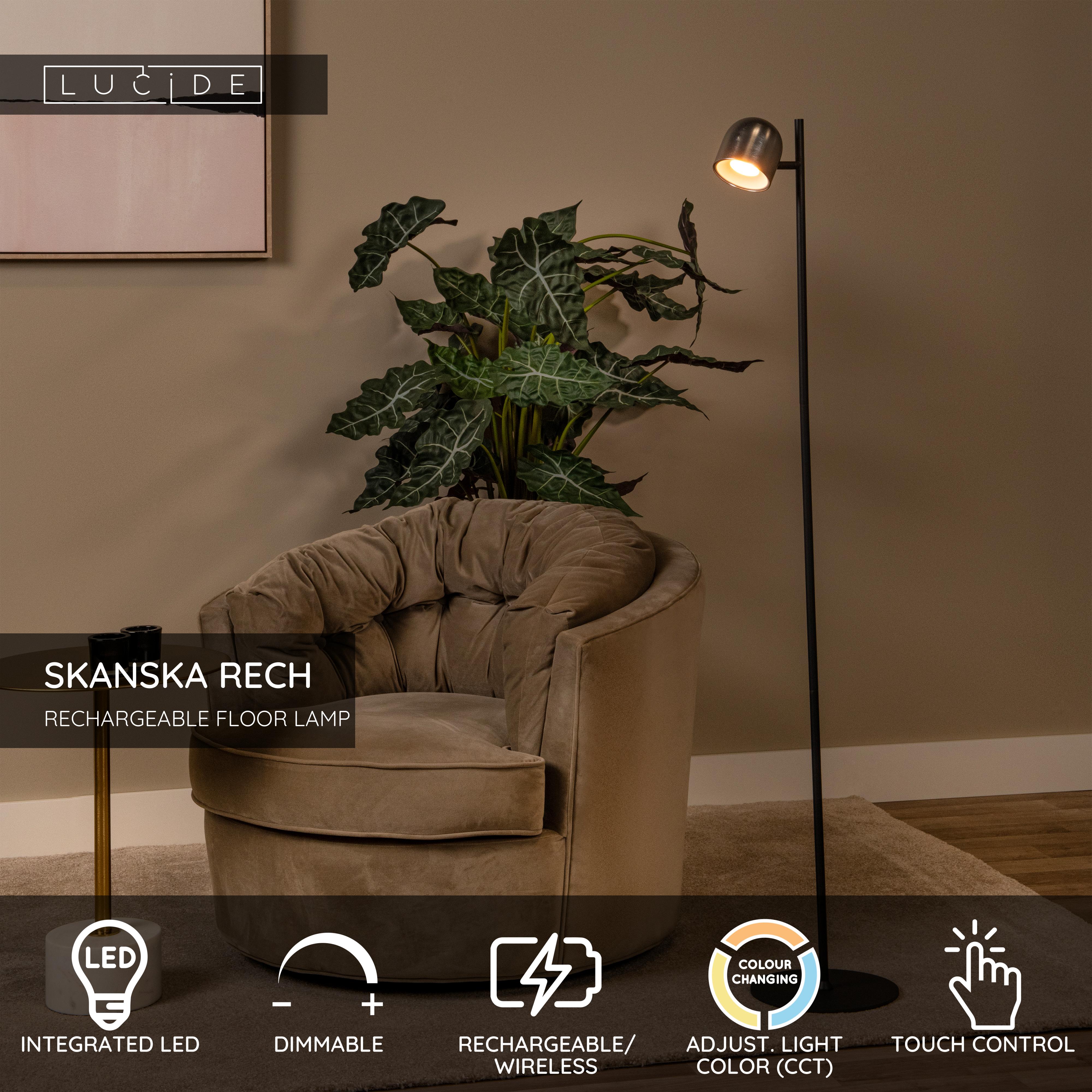 The SKANSKA RECH floor lamp combines modern design with functionality. Thanks to the integrated dimmable LED light source, adjustable color temperature (3000K-6000K), and touch controls, you can effortlessly customize the lighting to suit your preferences. The rotatable and tiltable design offers maximum flexibility. The battery provides up to 10 hours of wireless use. Add style and versatility to your space. Order now and experience personalized lighting!