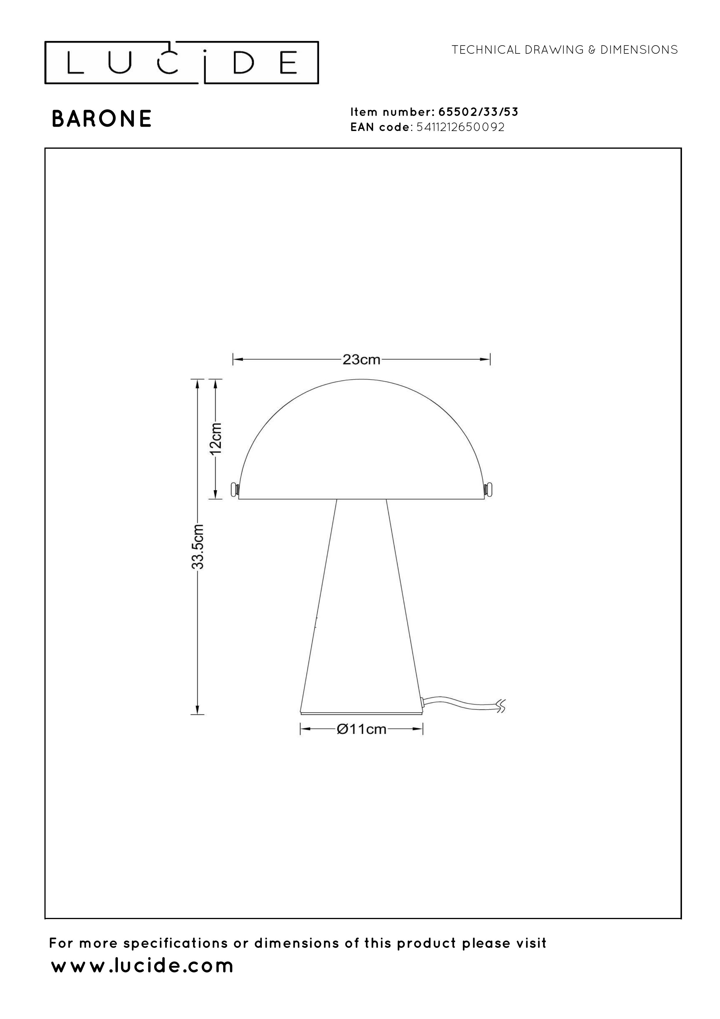 Lucide BARONE - Table lamp - Ø 23 cm - 1xE27 - Orange | Vibes