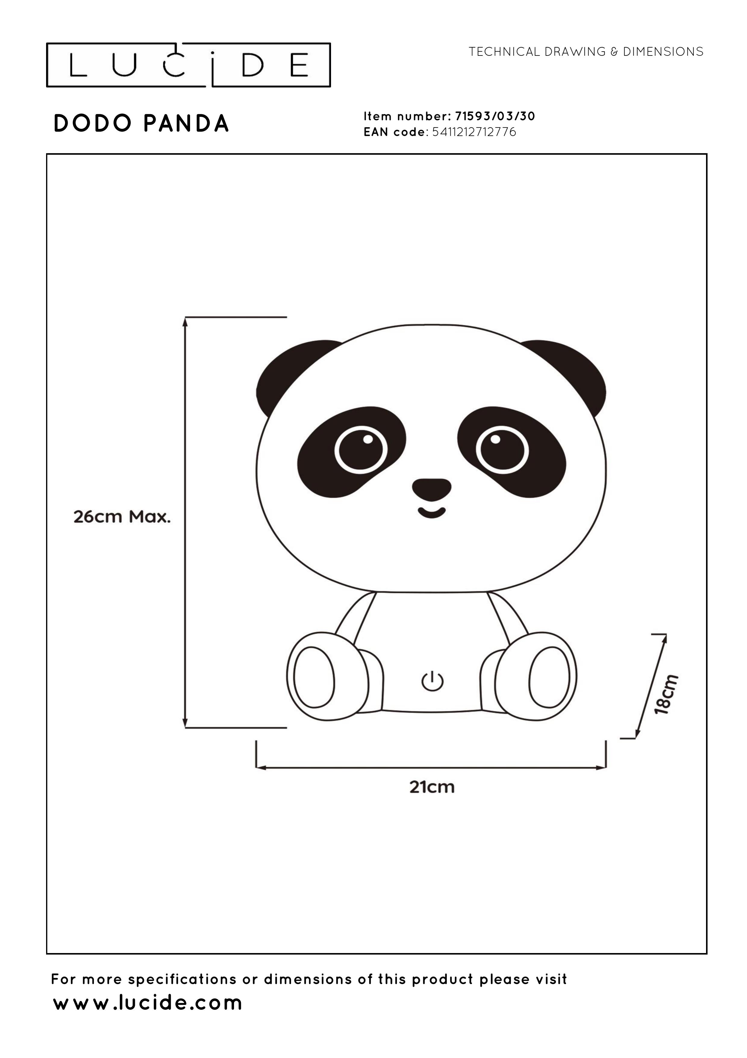 Lucide DODO PANDA - Table lamp Children- LED 3 StepDim - 1x3W 4000K - Black