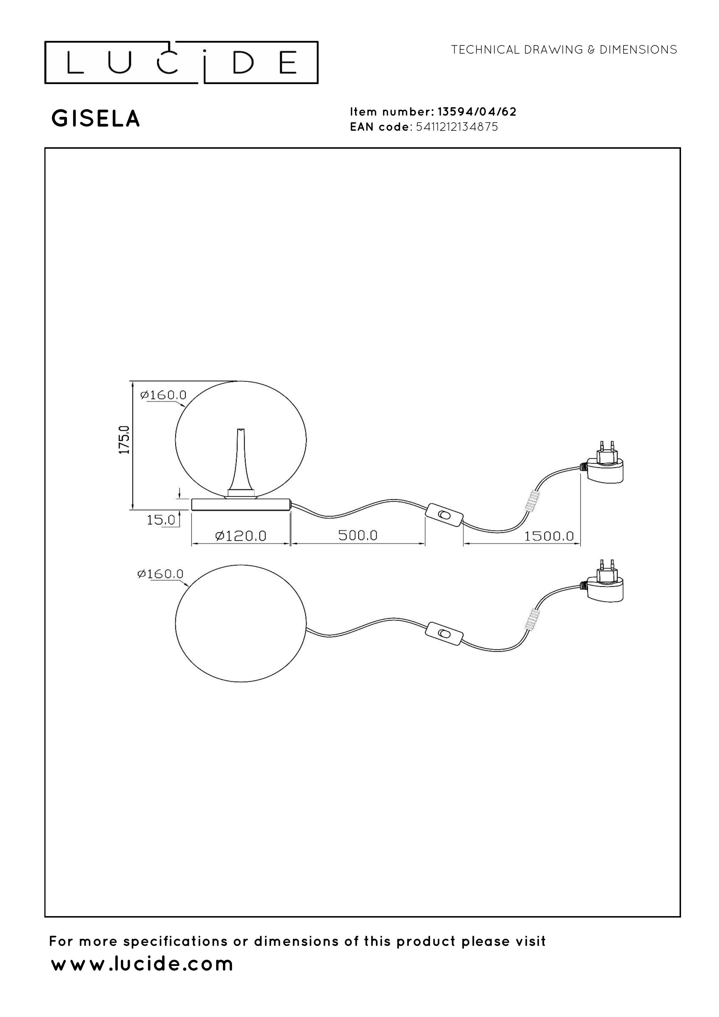 Are you looking for a mood setter that is compact, powerful and yet easy to use? Gisela is a no-brainer. The clear glass sphere with integrated LED bulb rests on an elegant, slim base. Simply switch the table lamp on or off via the switch on the cord and immediately enjoy the warm, white light that Gisela sends out. It feels completely at home in a modern interior, from the living room to the bedroom or as a mood setter in the hall.