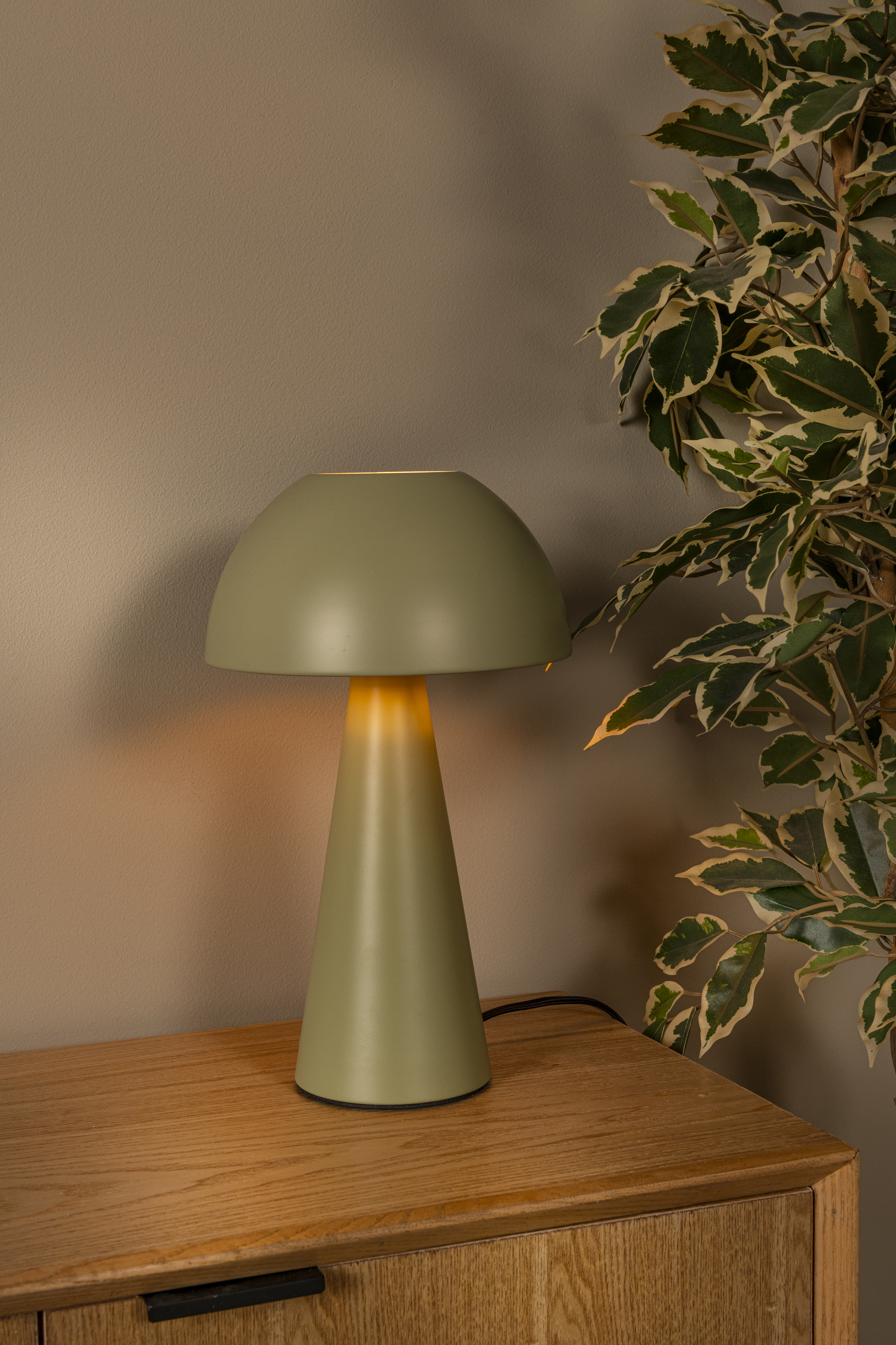 Looking for a stylish table lamp that radiates calm and elegance? JORGO is a modern table lamp with a subtle mushroom-shaped design and a compact cone-shaped base, ideal for bedside tables, sideboards, or desks. The lamp is made from matte metal and features an integrated switch on the cord. Suitable for an E27 LED bulb (not included) and provides pleasant, diffuse light all around. With a diameter of 20 cm and a height of 33 cm, JORGO fits perfectly into any contemporary interior. Easily create ambiance and order JORGO today.