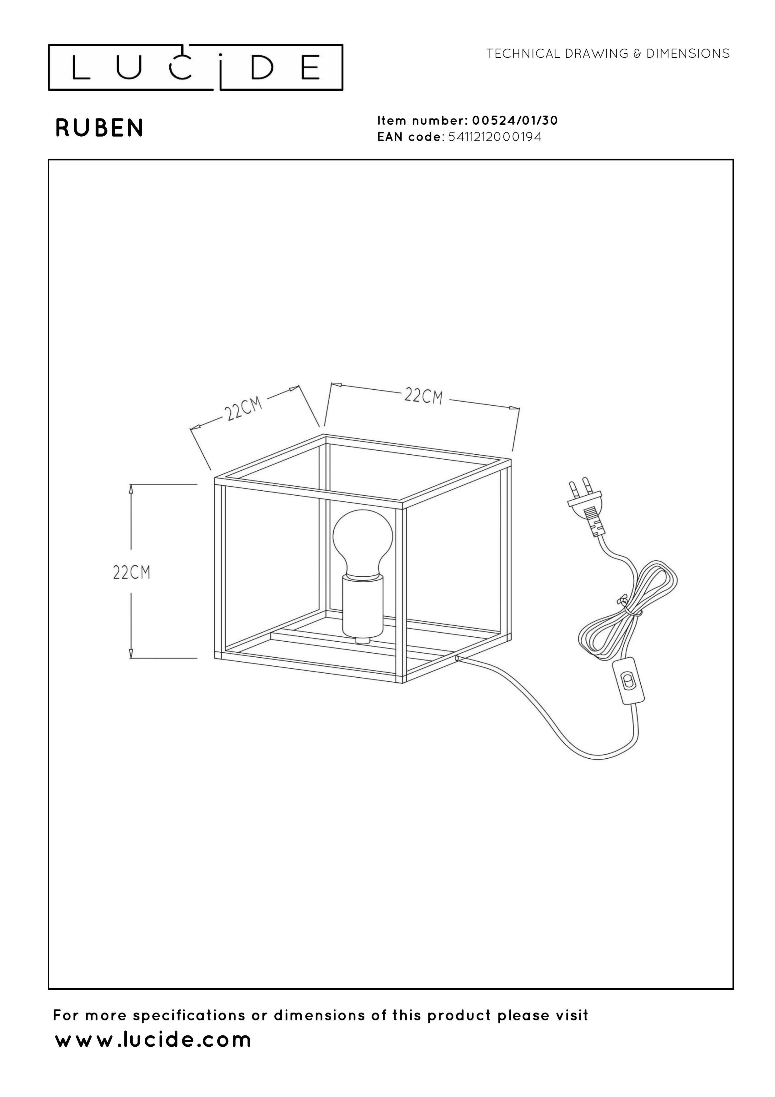 Do you have a cosy, dark corner that doesn't need too much light? Put a nice filament bulb in this table lamp to create the perfect atmosphere. The lamp is named Ruben. The sleek lines of the design allow this 22 by 22 centimetre cube to match any type of home, no matter where you place Ruben. The brass-coloured fitting makes the lamp stand out subtly. As a result, it looks great on a cabinet in your living room, as atmospheric lighting in your bedroom or as extra light on your dining table. The lamp is operated with the switch on the cable.