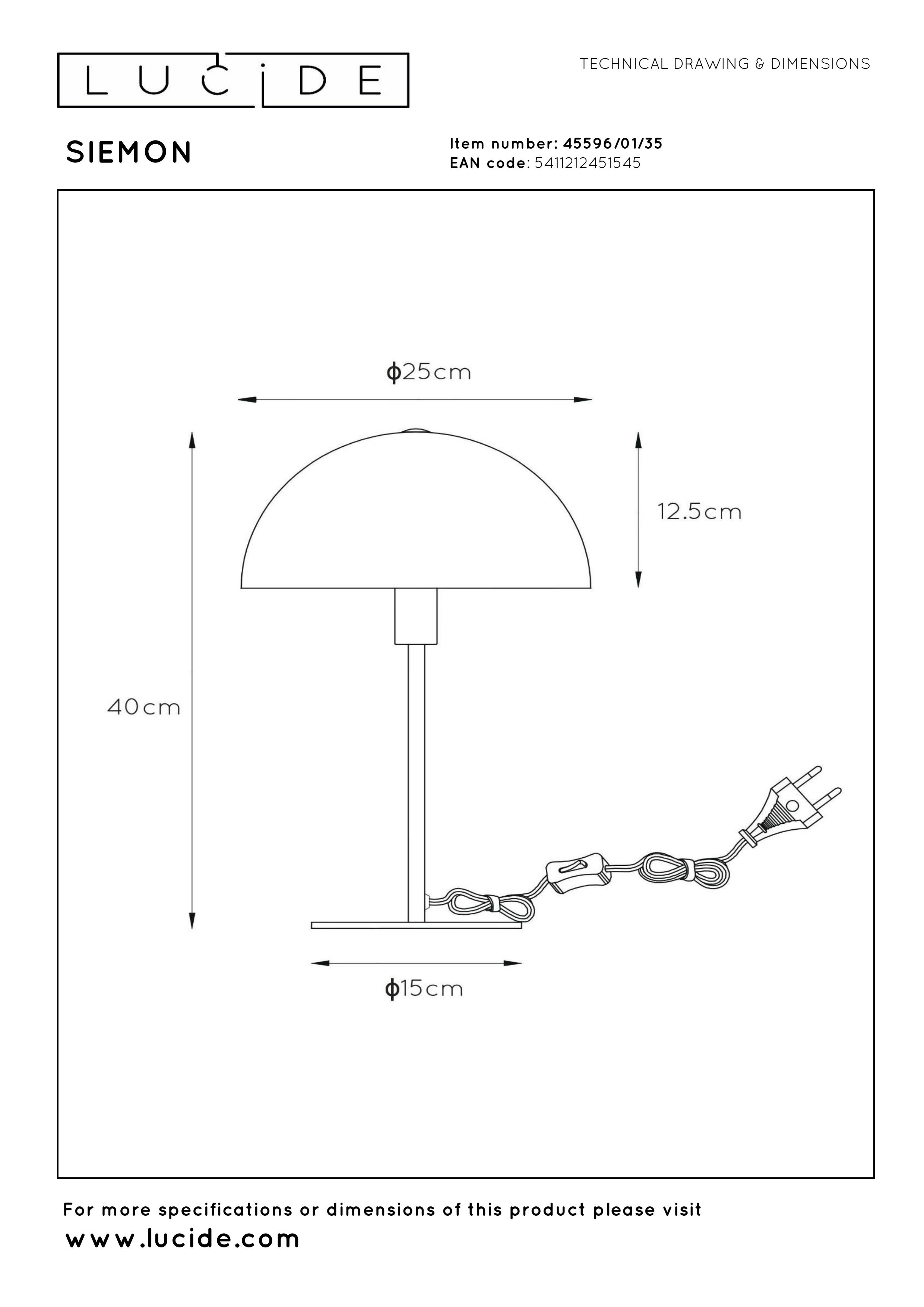 Siemon combines a hint of retro with a touch of modern. Two top ingredients for a successful table lamp in your living room or dining room. This lamp is made of high-quality steel. Due to its design and height of 40 centimetres, Siemon looks simultaneously adorable and modern. In the middle of the semi-circular lampshade, you will find the light bulb, which reflects the light perfectly along the walls of the lampshade. This table lamp gives atmosphere to the entire room. You can easily switch Siemon on and off via the switch in the cord.