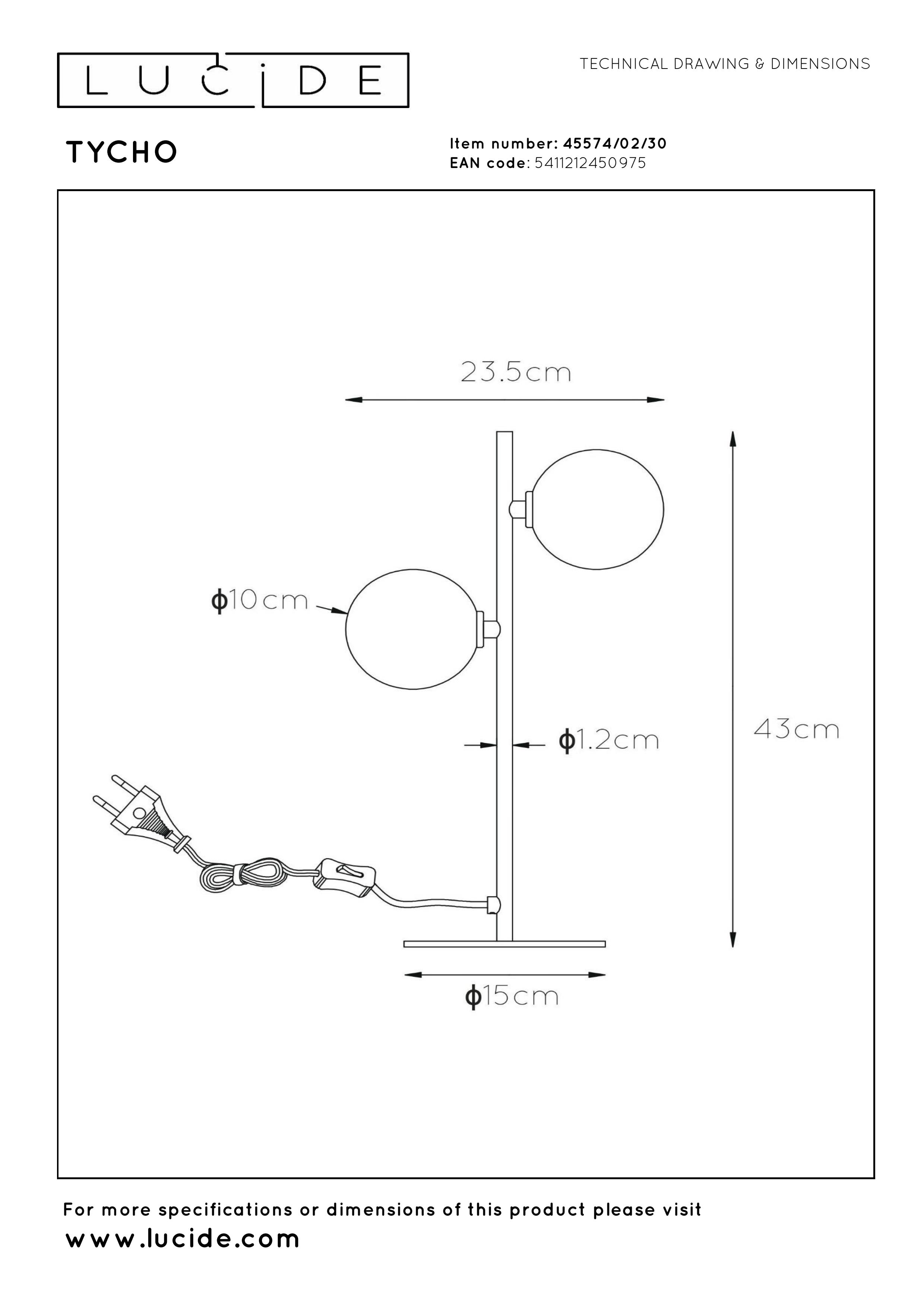 Table lamp Tycho owes its retro look among other things to the choice of high-quality materials: high-quality steel and real glass give shape to this luxurious lamp. The two light points are attached at different heights to the sleek steel base. The perfect spheres are positioned at 180° relative to each other. Despite the difference in height, Tycho radiates a natural balance. From the core of the glass spheres, the lamps spread their pleasant glow in your contemporary or rural interior.